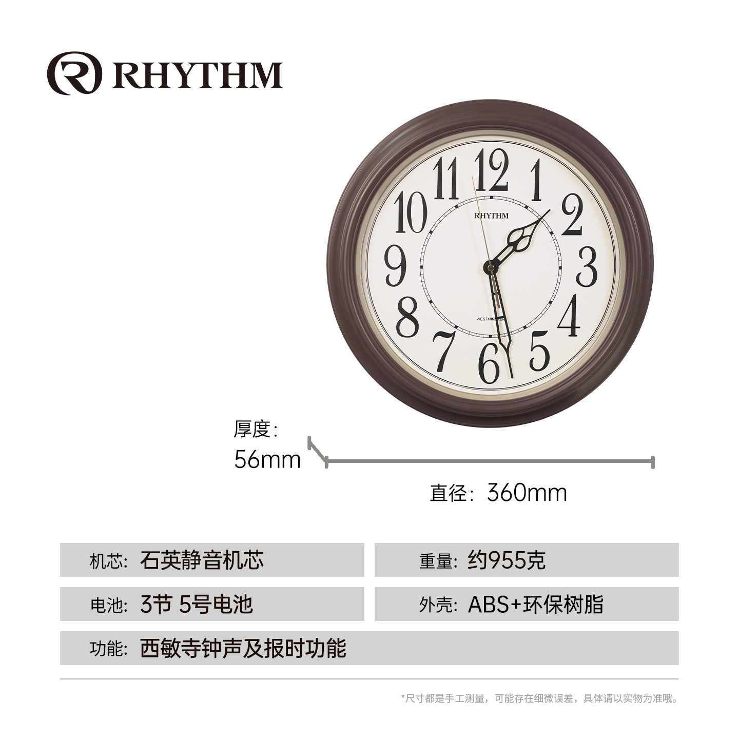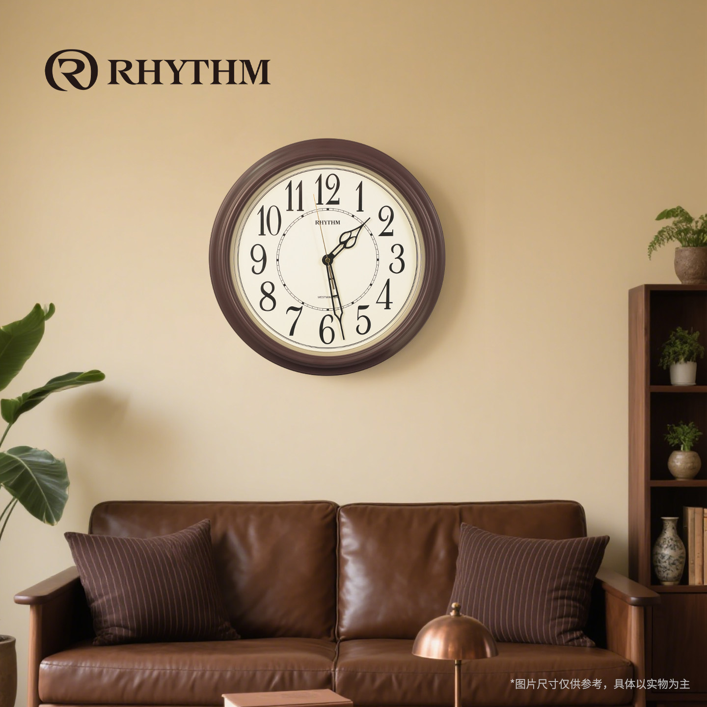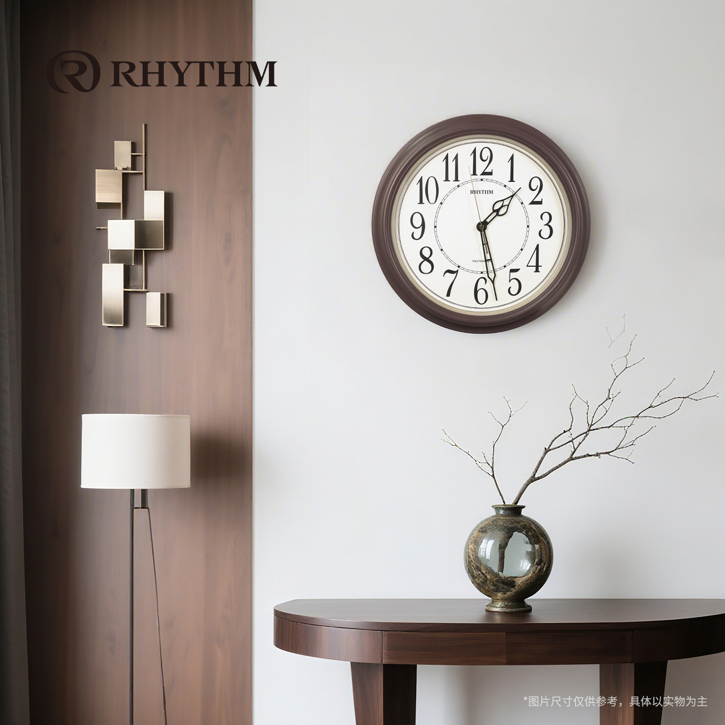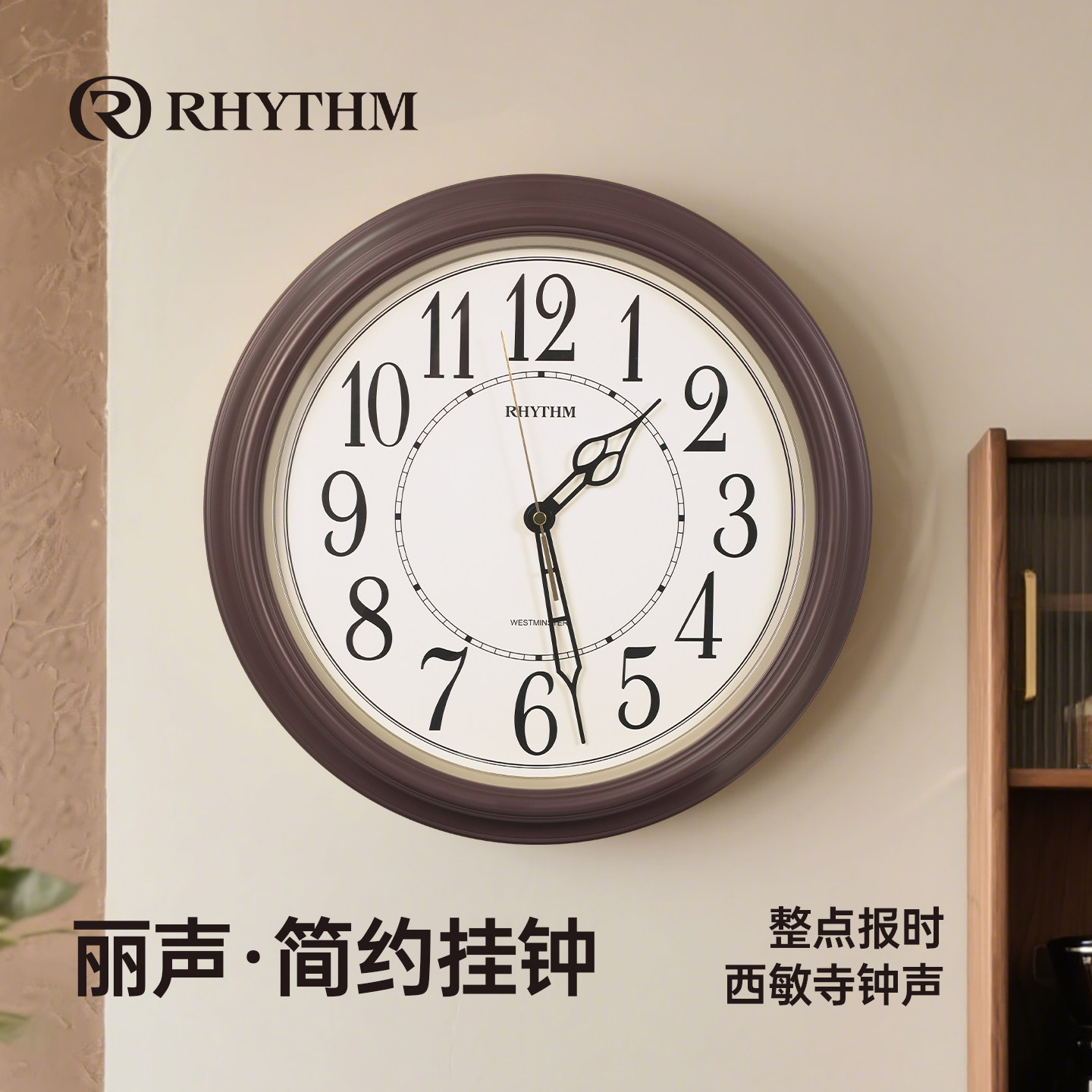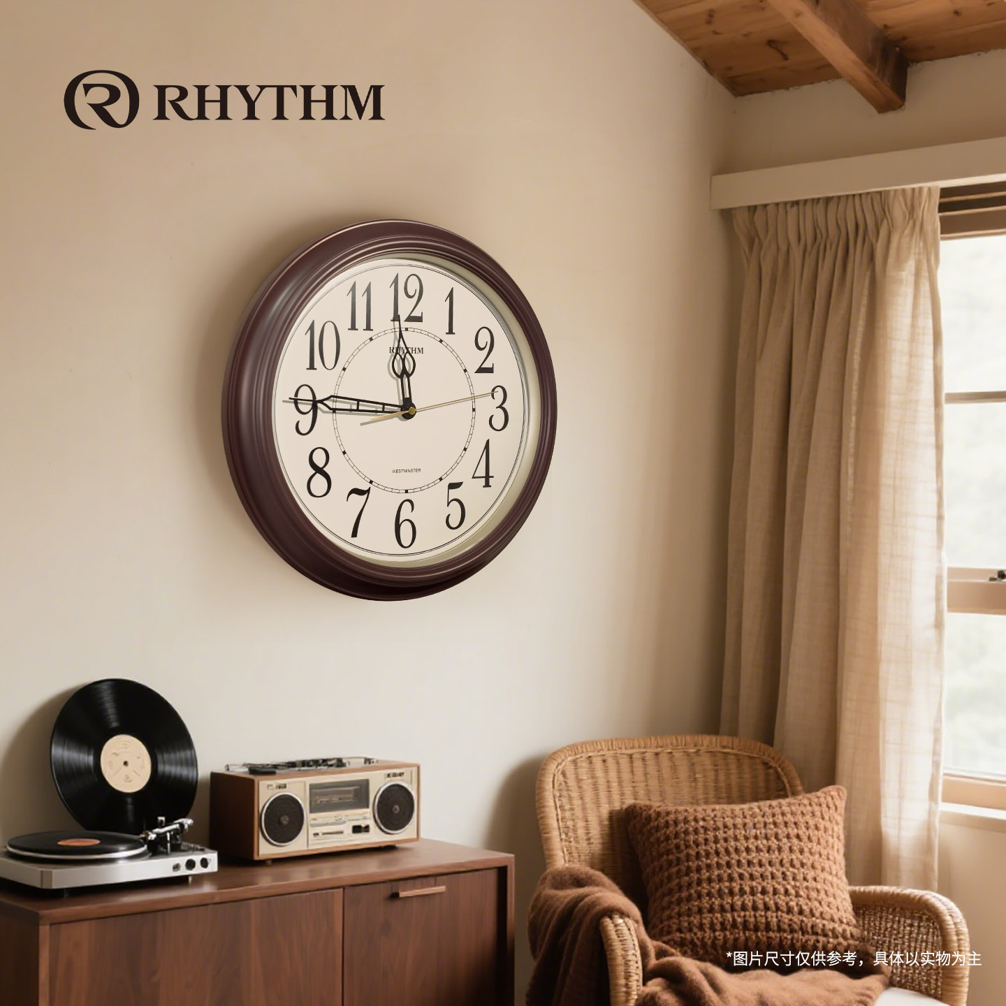 📚 RHYTHM日本丽声复古圆形客厅静音挂钟壁挂式时钟家用客厅装饰钟表