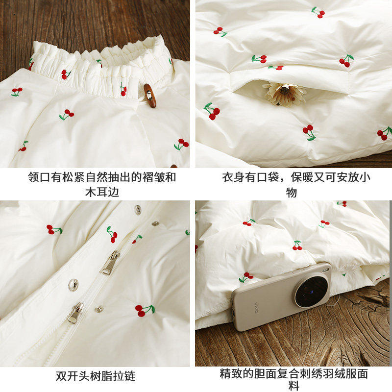 📚 清【恰逢晚冬】复古原创小樱桃刺绣羽绒服女冬季加厚保暖精致外套