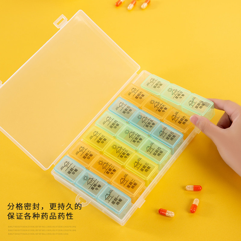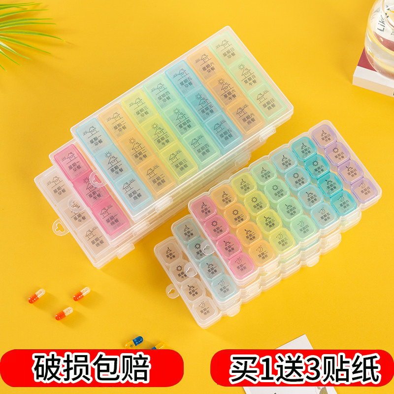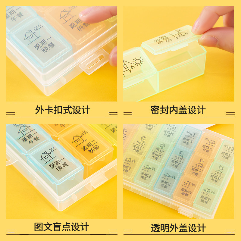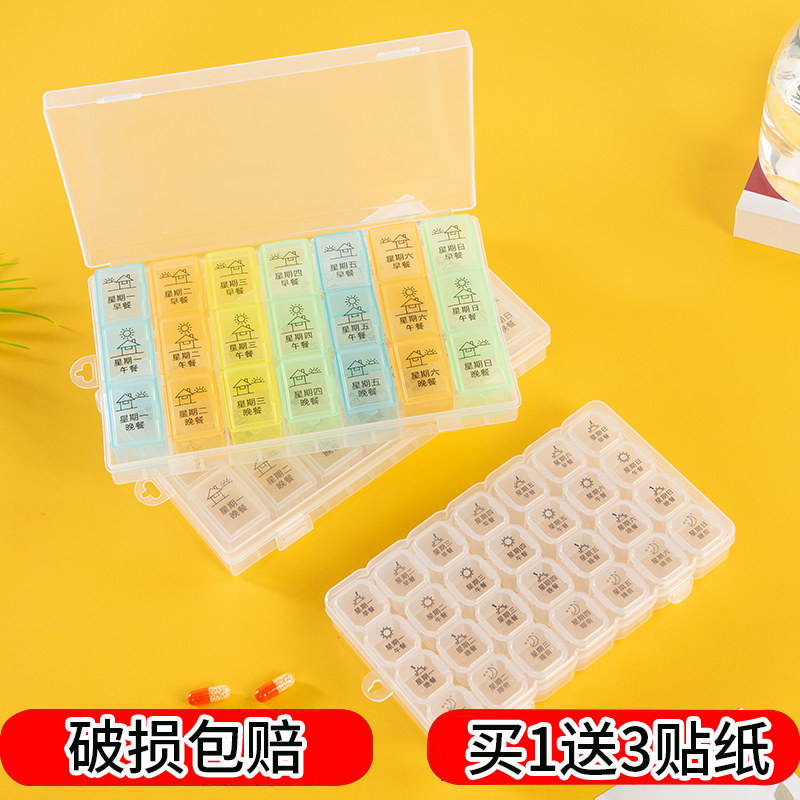 📚 药盒早中晚便携7天大容量分药物器装盒子切药器老人随身小收纳盒