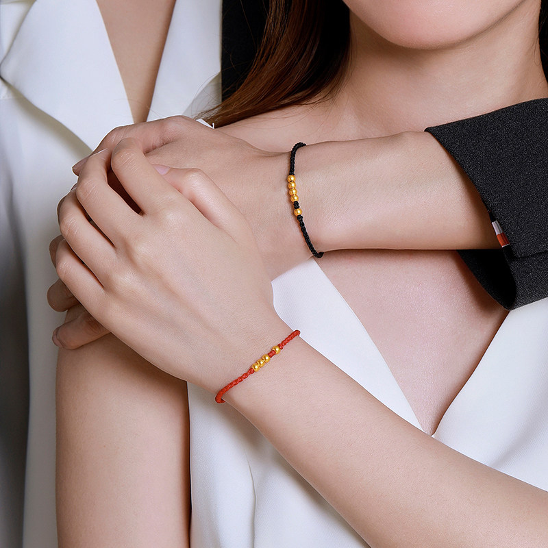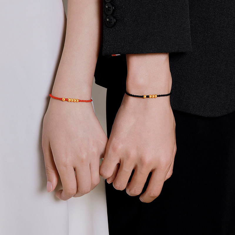 📚 梦金园黄金转运珠手链情侣1314硬金金珠红绳手链送男女友节日礼物