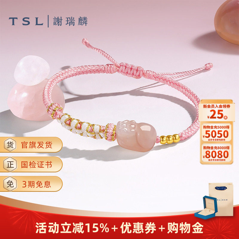 📚 TSL谢瑞麟清新少女风玉髓系列貔貅编织手绳金珠串珠编绳XQ263