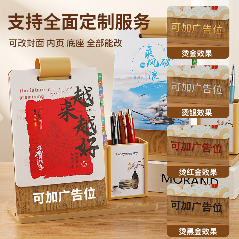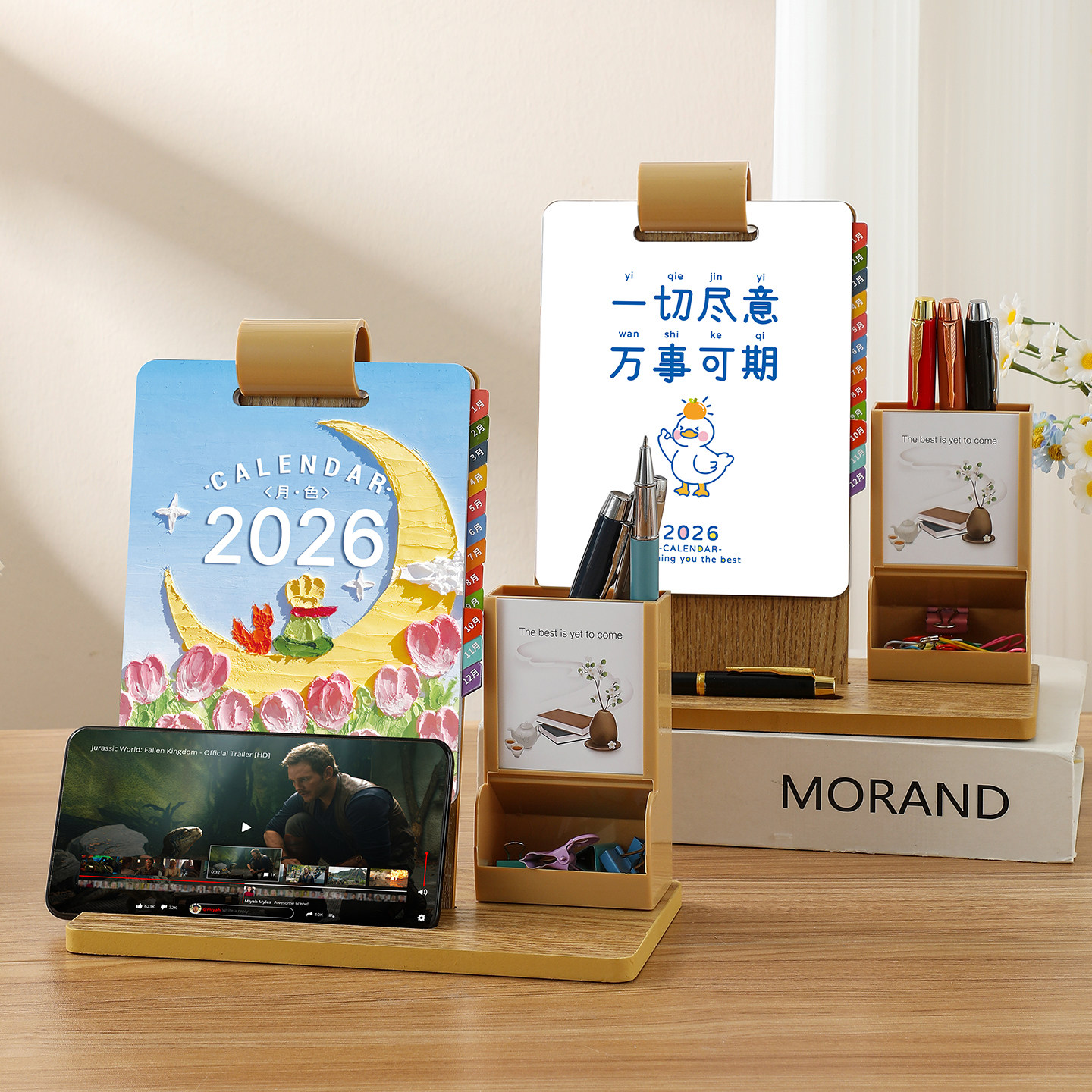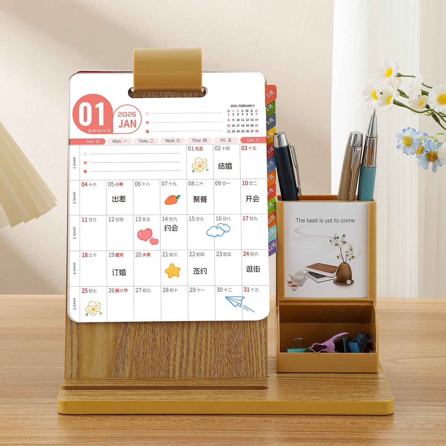 📚 台历2026年新款定制办公室桌面多功能木质创意简约日历摆件笔筒新款计划本工作月历订制定做logo内页印刷广告