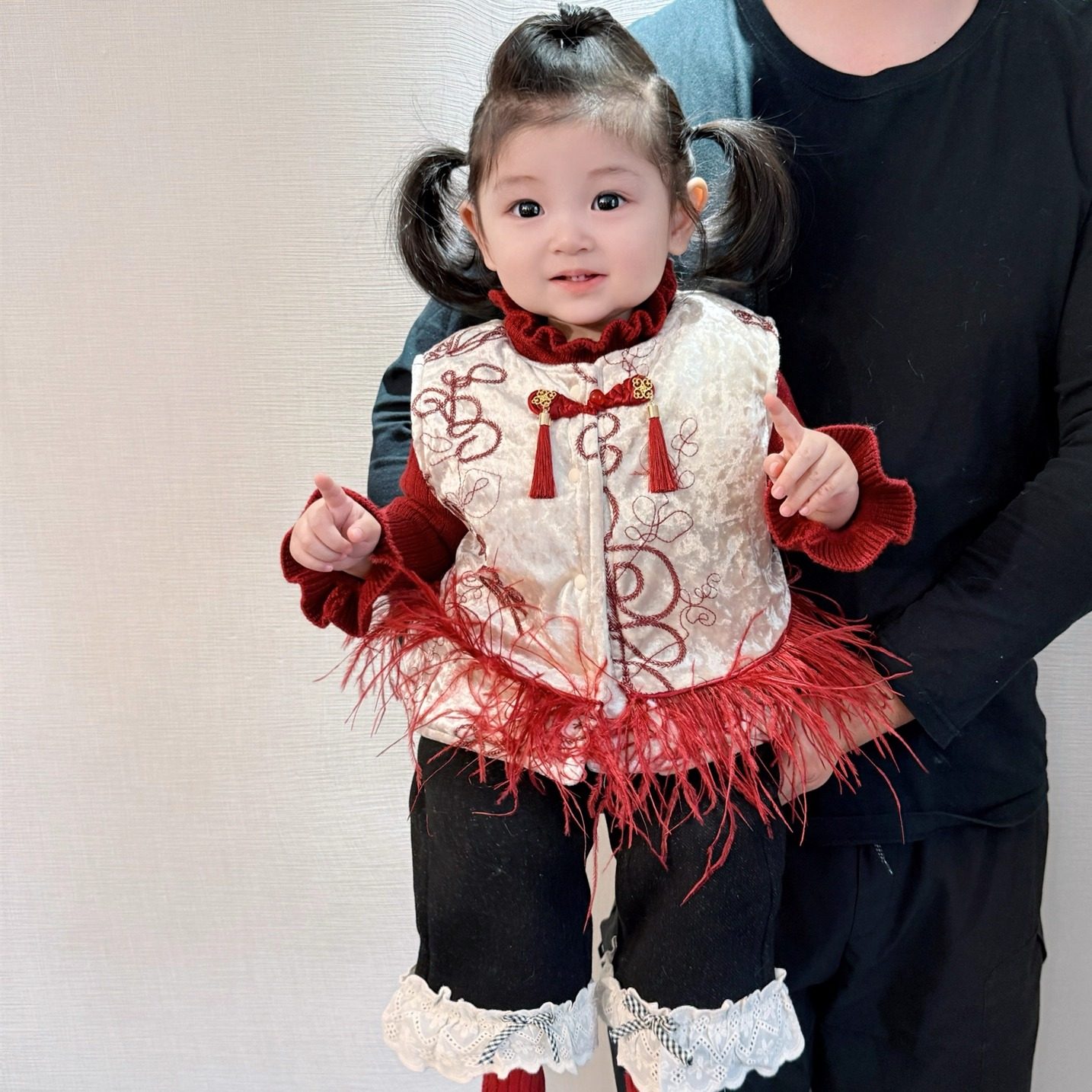 🎀款式与设计:这套新中式套装的设计非常符合女宝的喜好,融合了中式元素的优雅与现代感的时尚。宝宝穿上这套衣服,仿佛就像一个小公主或小王子,既温暖又可爱。