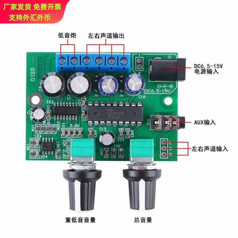 📚 【晒邦】2.1三声道25W+2*6W超重低音12V音响D类数字功放板微型030