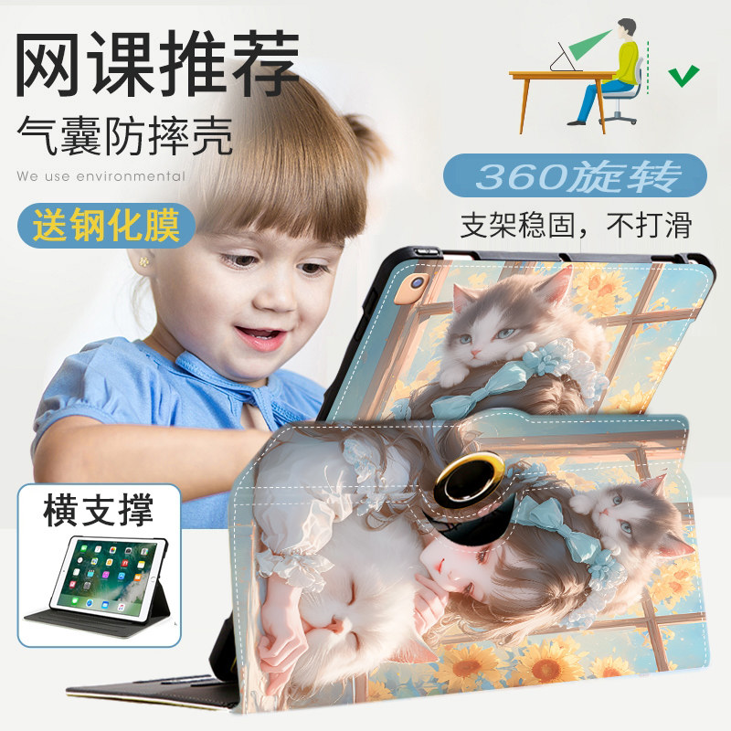 📚 适用ipadpro11寸保护套iPadPro保护壳可爱卡通13寸新款air11英寸可旋转苹果ipad9保护套mini6全包边iPadAir6