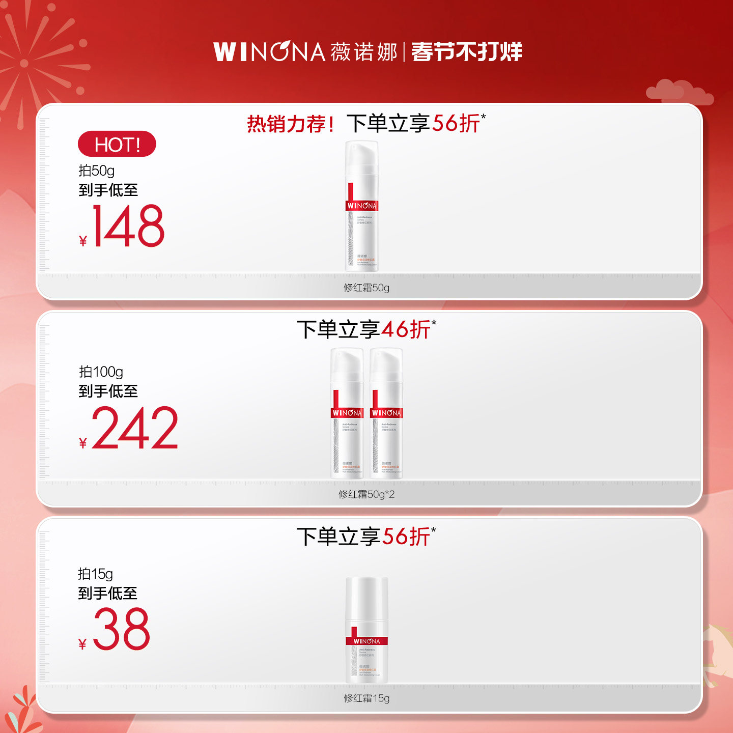 28¥ CZ009 z2ozUnp7M3E¥ https://m.tb.cn/h.7y1TBDf 薇诺娜舒敏保湿修红霜 温和保湿舒缓滋润修护肌肤屏障补水面霜15g --------------------- 【原售价】268元 【现售价】31元。
