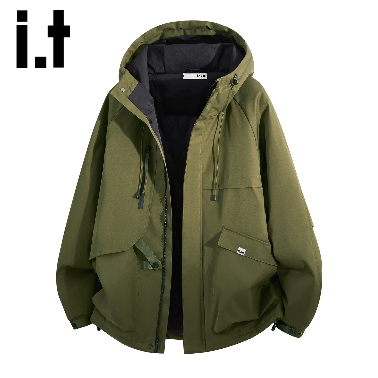 📚 it izzue秋冬季防风连帽冲锋棉衣男士加厚户外宽松夹克棉服外套Y