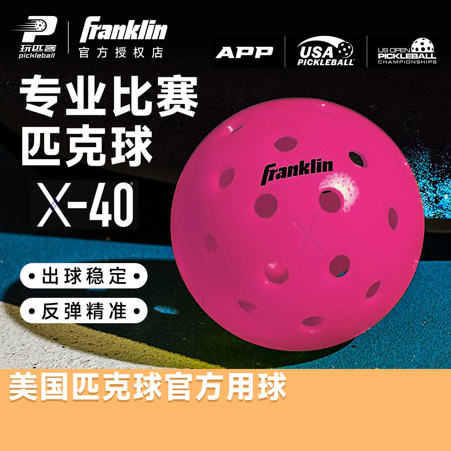 📚 Franklin匹克球40孔滚塑球X40比赛专用匹克球赛事球USAPA认证指定