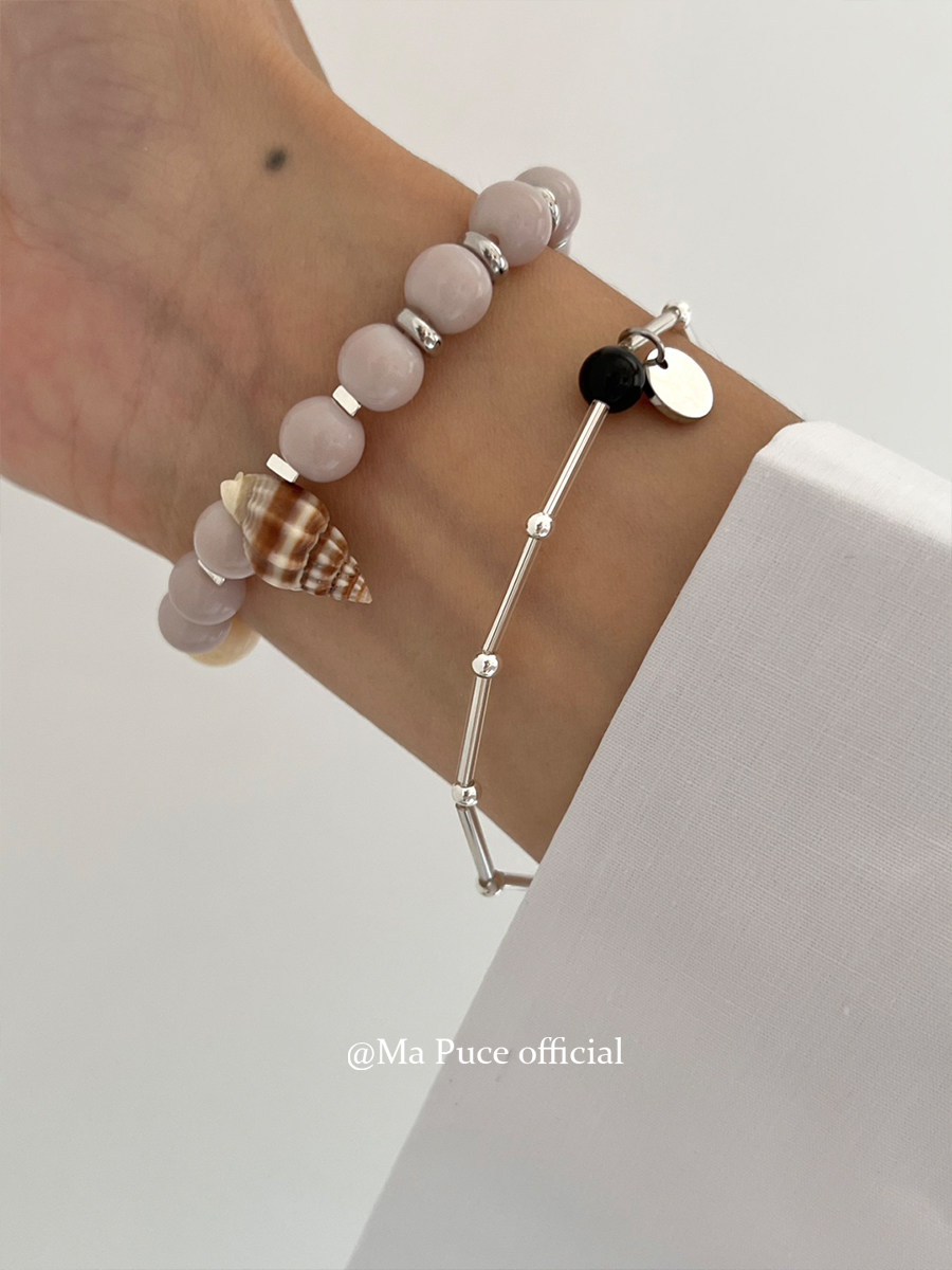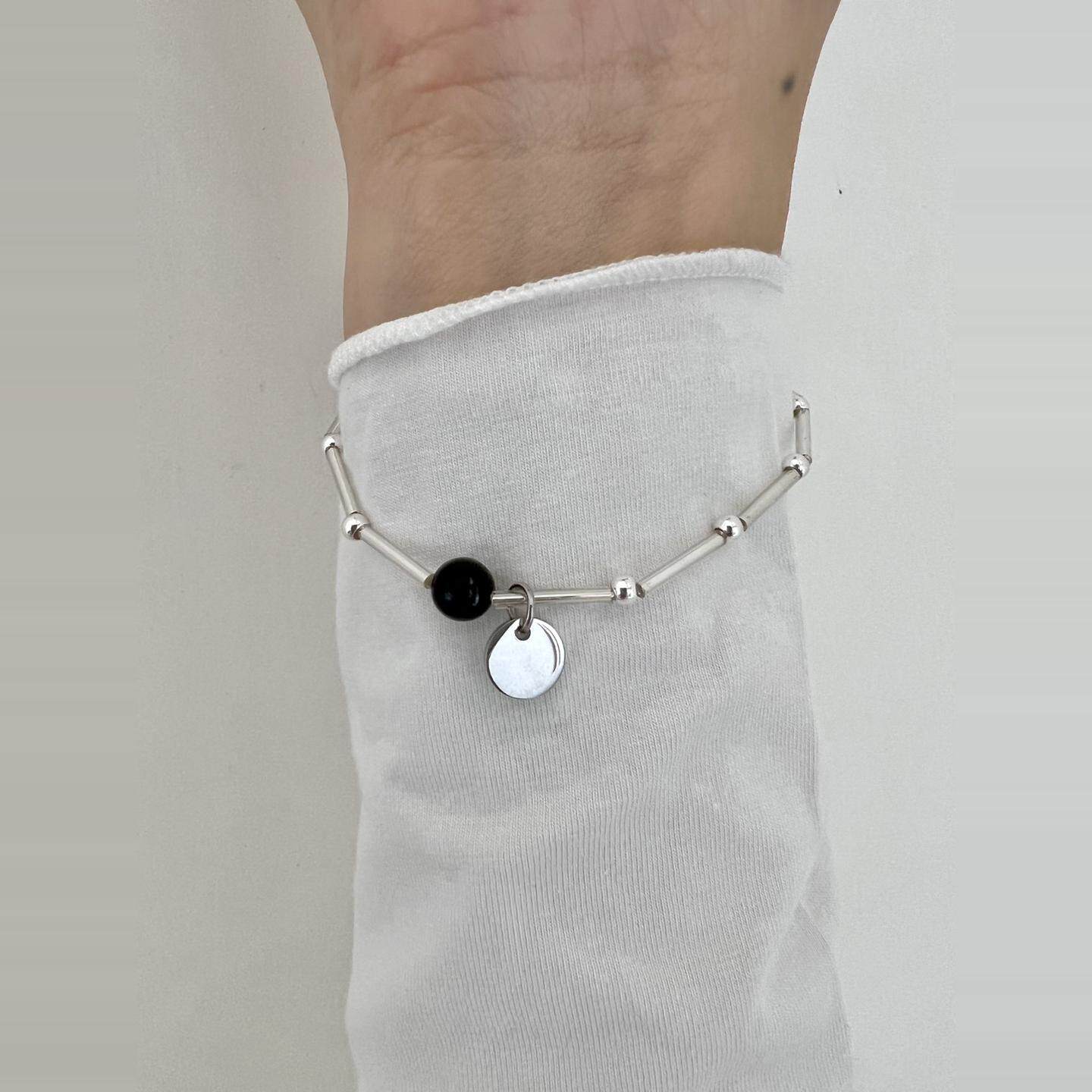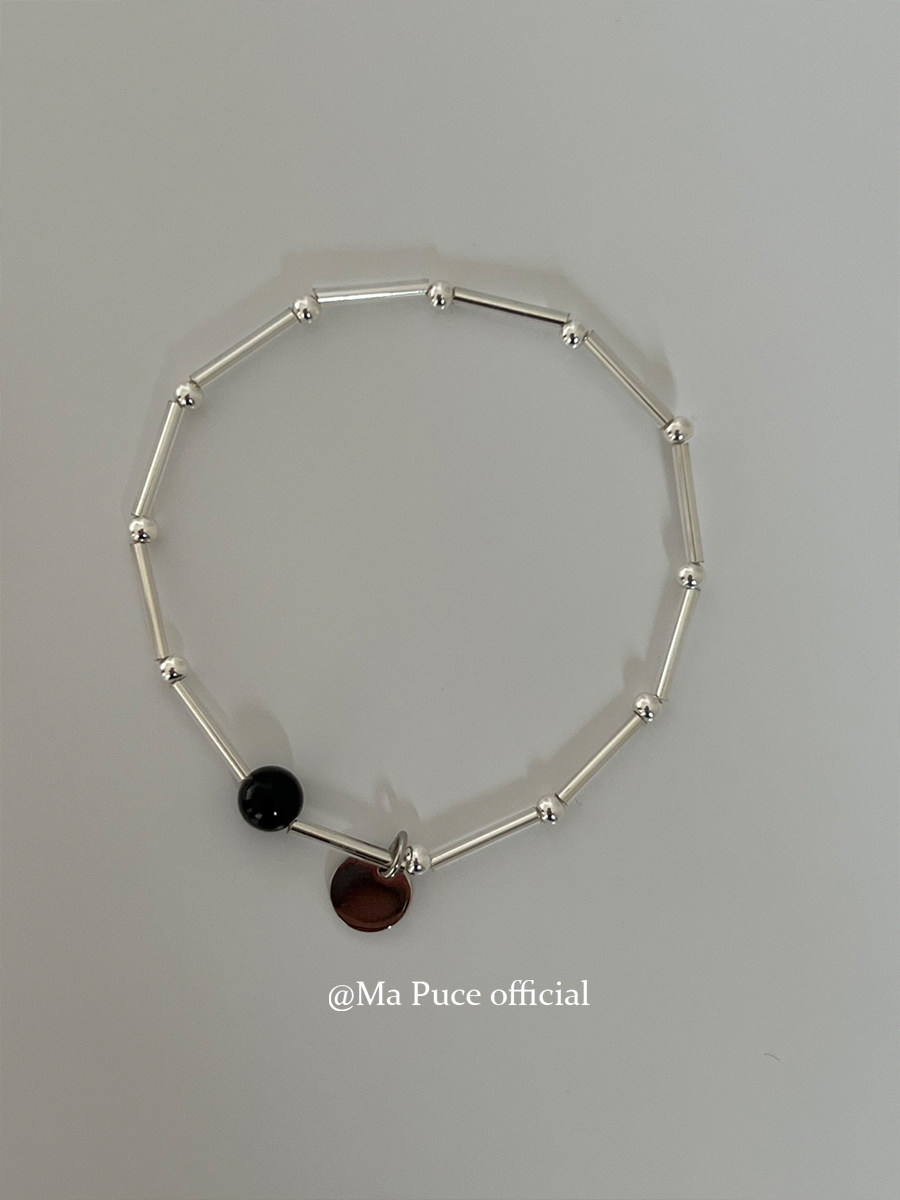 📚 博主同款天然黑玛瑙管珠圆牌S925纯银手链女生手串轻奢小众手饰