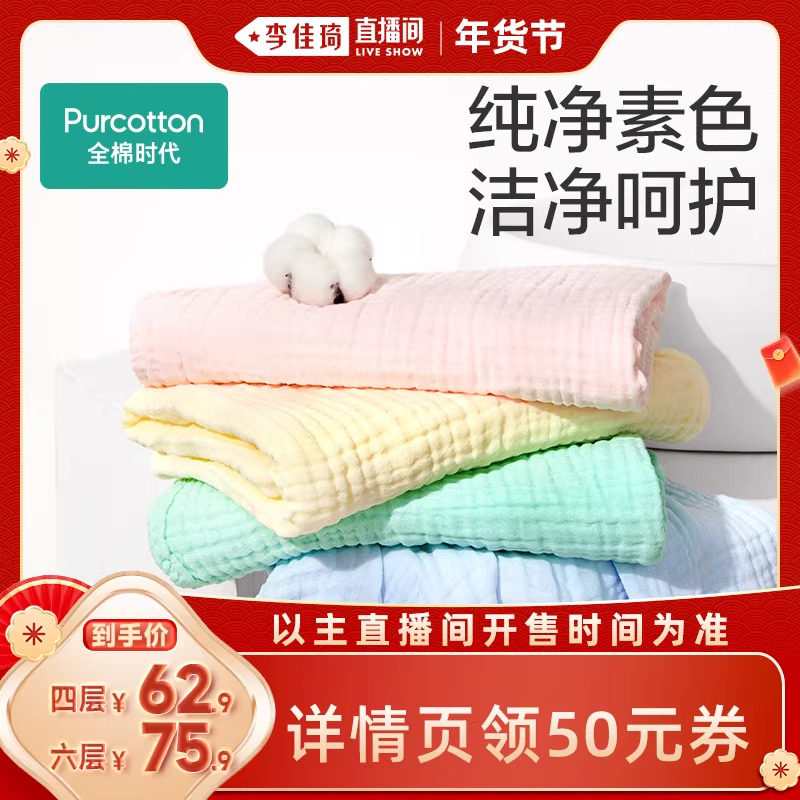 📚 【李佳琦超级年货家装潮电节】全棉时代纱布浴巾纯棉抗菌洗澡速干