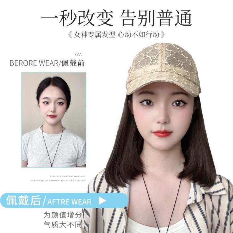 📚 夏季镂空透气鸭舌帽内扣帽子假发一体夏天薄款假发女全头套假发