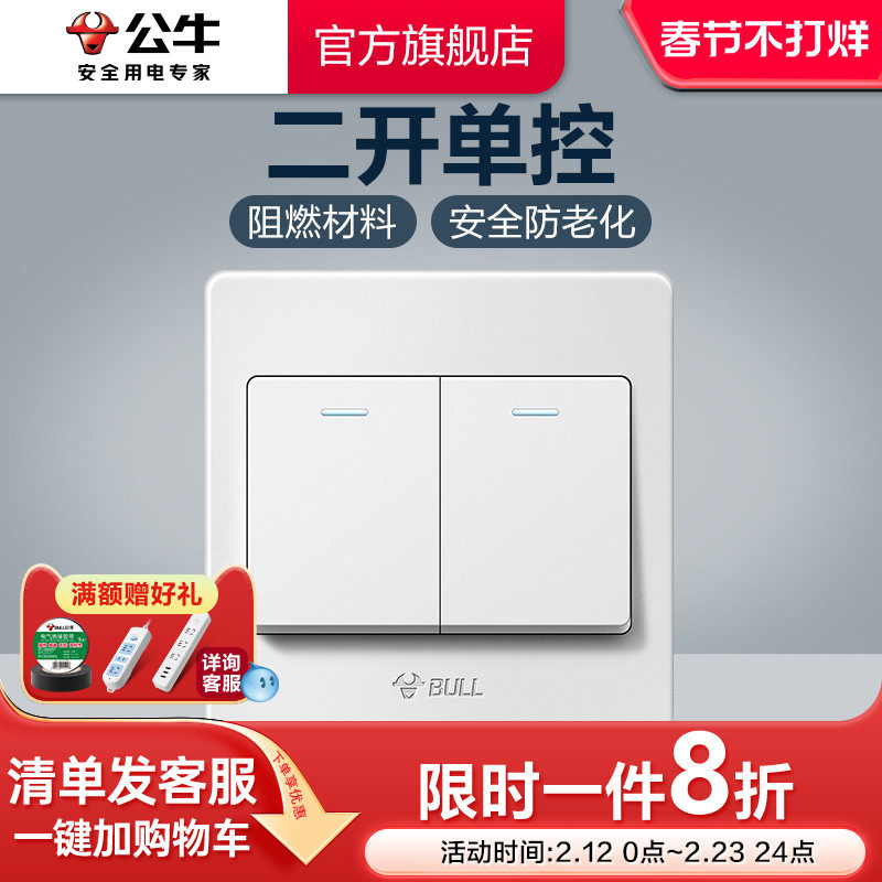 📚 公牛插座旗舰开关插座2开二开单控二位开关面板单联双开开关G07白
