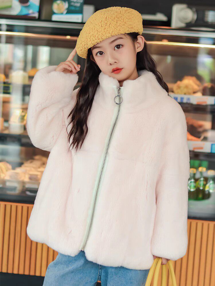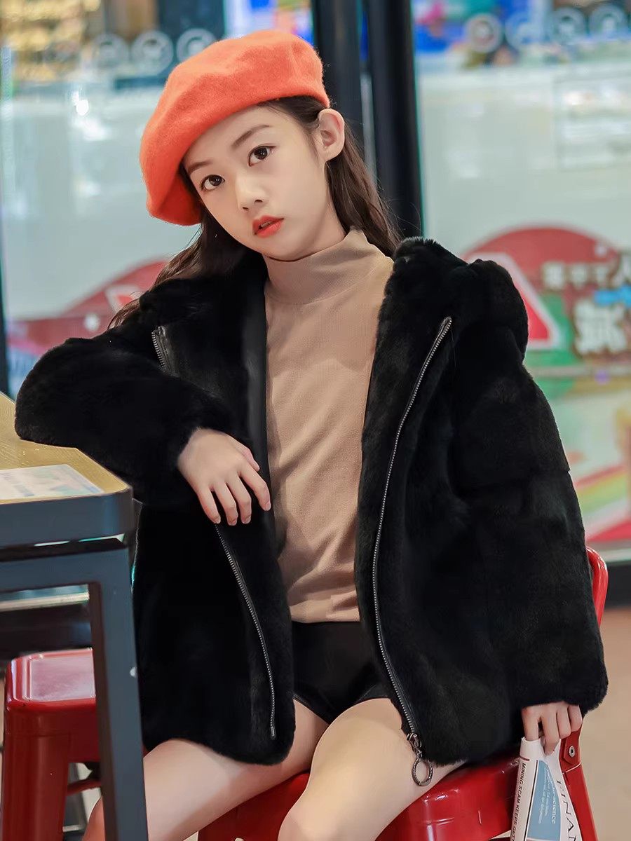 📚 女童皮草外套獭兔毛整皮毛一体中大童小女孩宝宝皮草大衣韩版宽松
