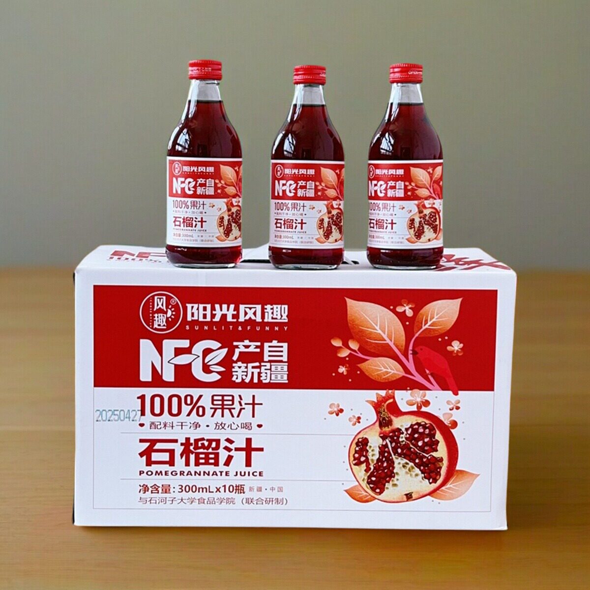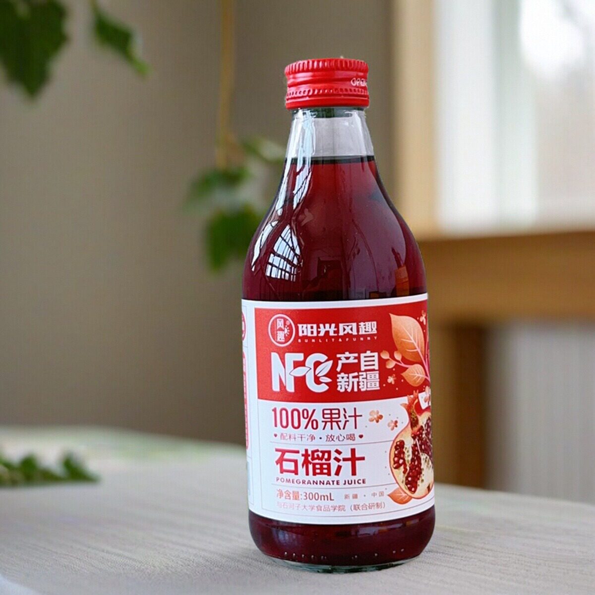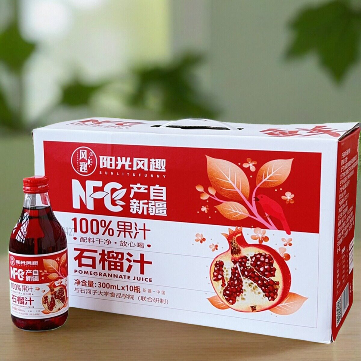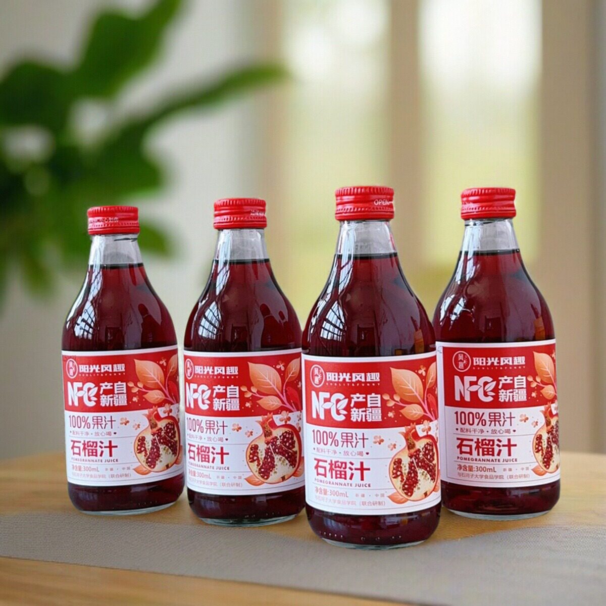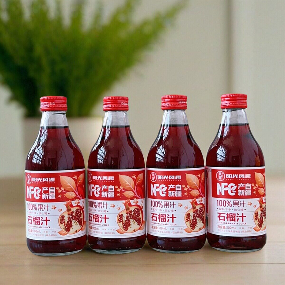 📚 【4瓶】阳光风趣NFC100%石榴汁300ml果汁饮料玻璃瓶装新疆产礼盒