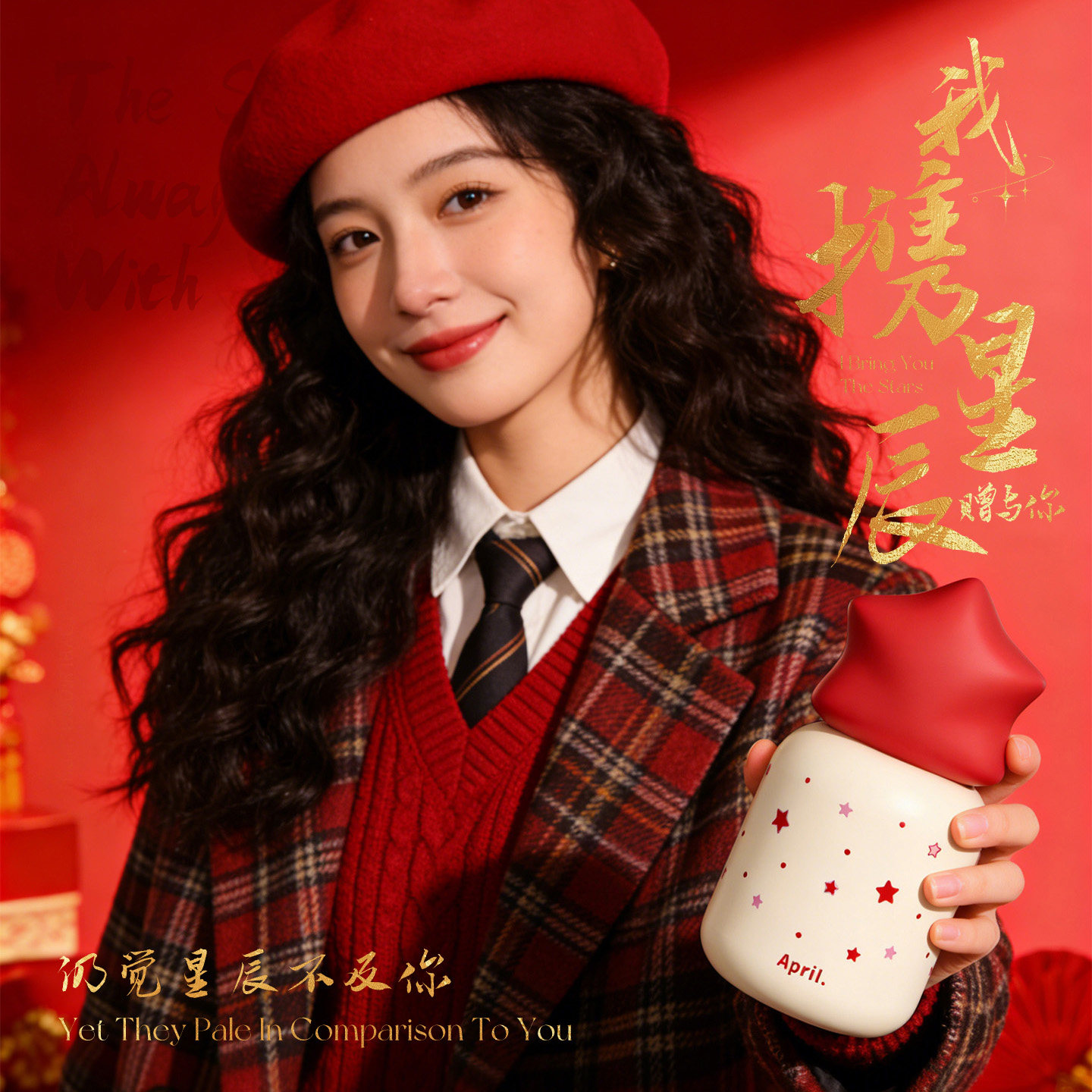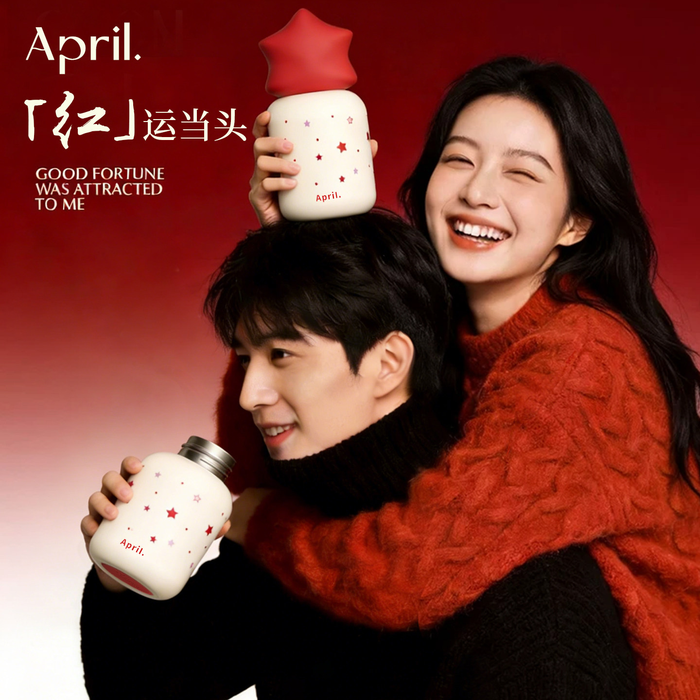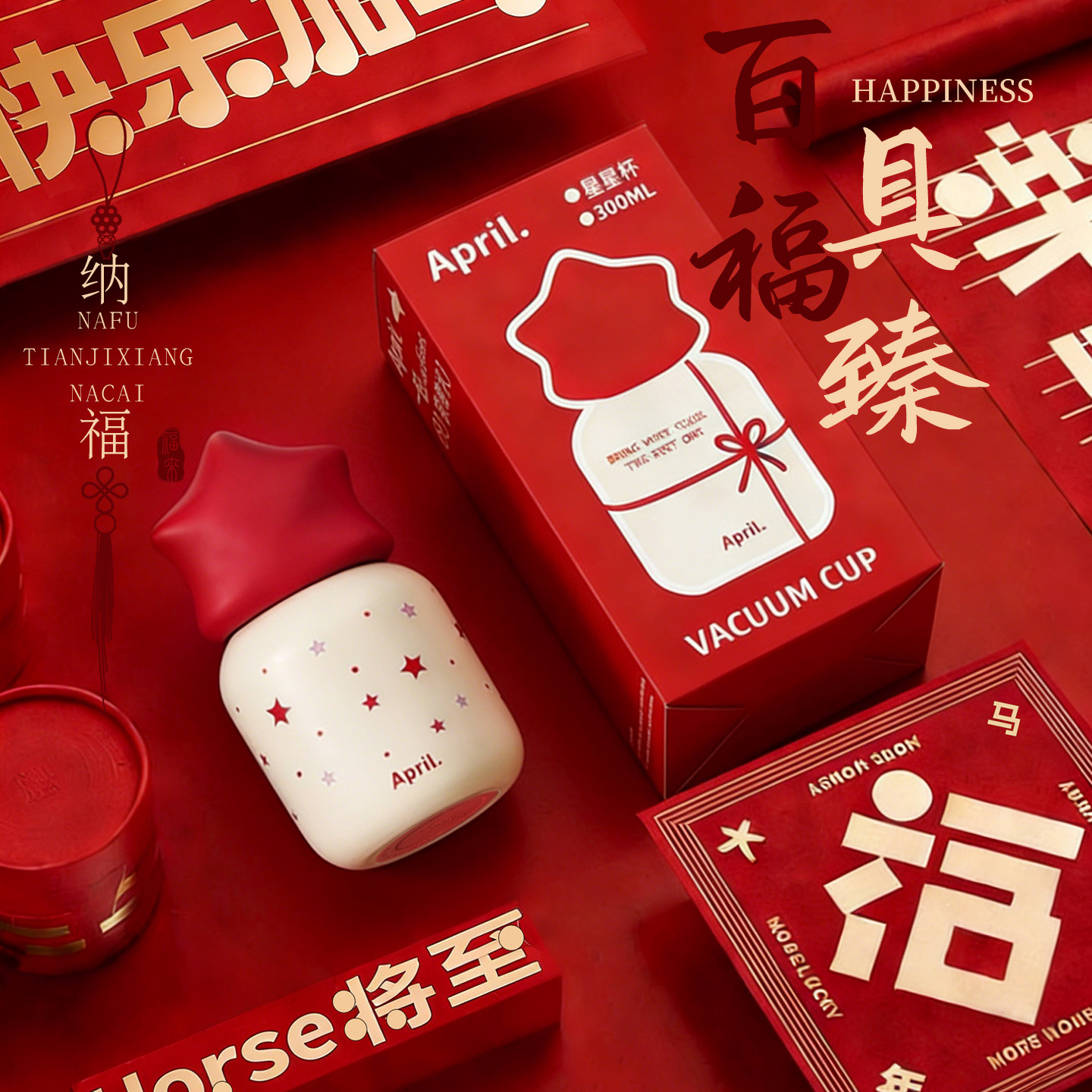 📚 April女生新年本命年杯子伴手礼红色送礼星星保温杯小巧情侣水杯