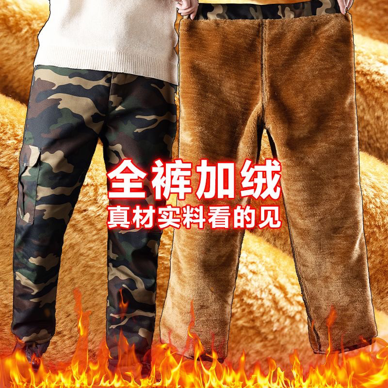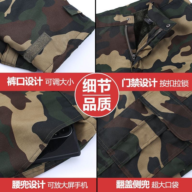 📚 冬季迷彩加厚直筒棉裤男户外工地加绒防水耐磨工装裤冷库抗寒裤子