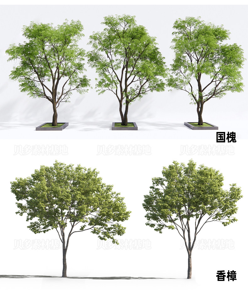 📚 丛生桂花香樟国槐园林小乔木朴树乌桕槭树栾树榆树行道树SU模型