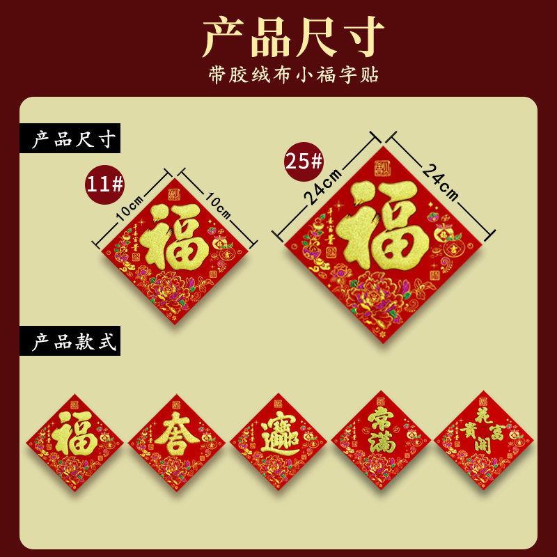 📚 2026年马年新款绒布小福字宝字吉字新年自粘门贴烫金斗方春节装饰