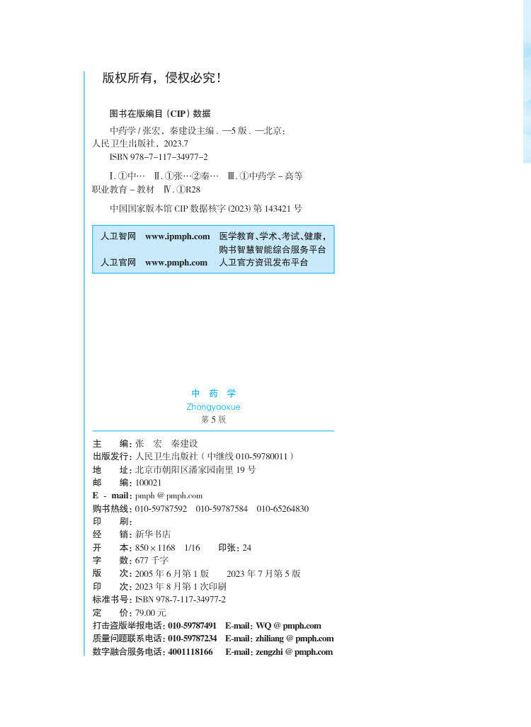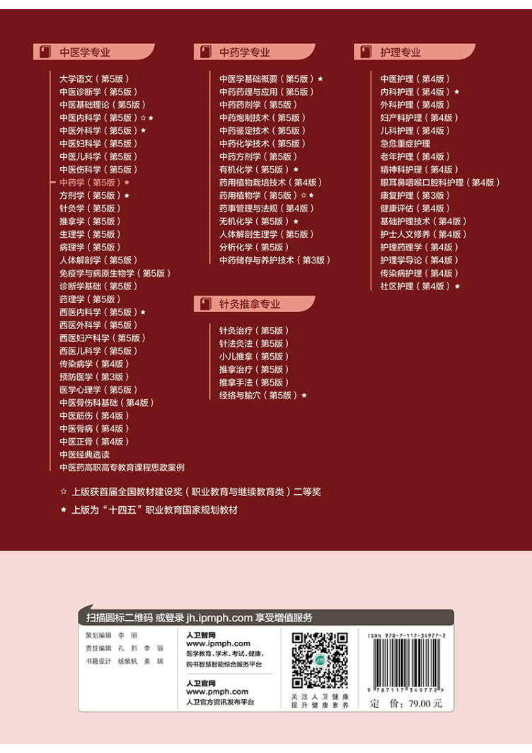 📚 现货正版 平装 中药学 第5版 高职中医 配增值 张宏 秦建设 人民卫生出版社 9787117349772