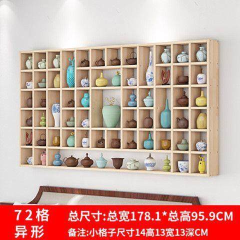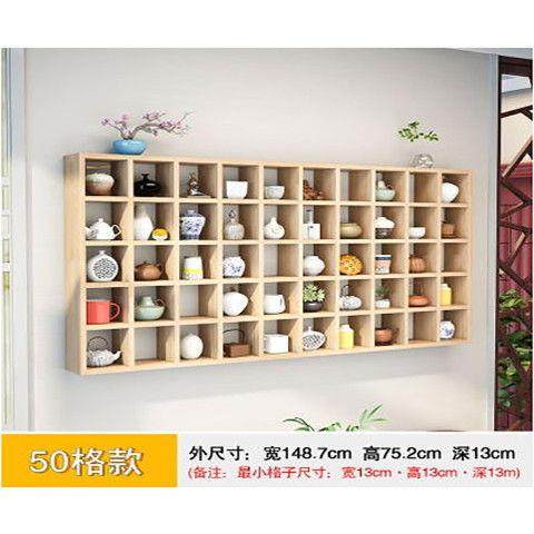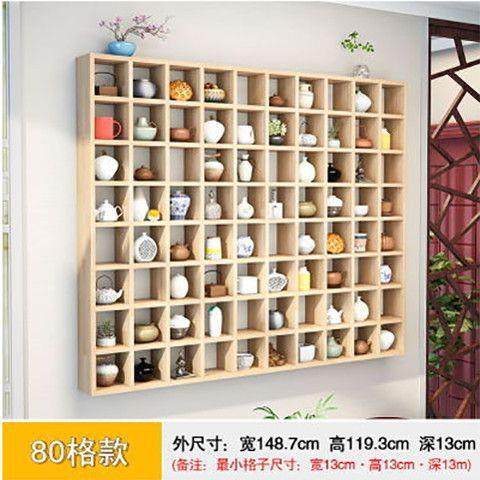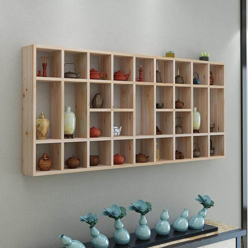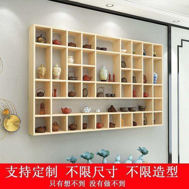 📚 茶室置物柜储物柜子置物架盏古董客厅格子架实木挂墙展示方格