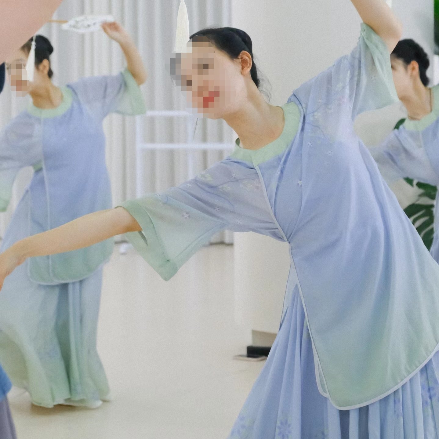 📚 清风徐来舞蹈服装宽松圆领小衫青衫烟雨客演出服诗意花朵唐风套装