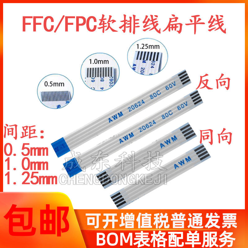 📚 FFC/FPC软排线 连接线扁平0.5/1.0mm-4/6/8/10/12/14/20/30/40Pin