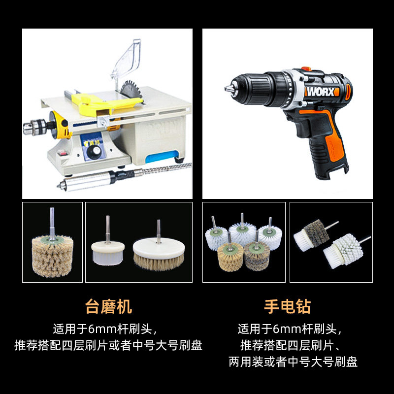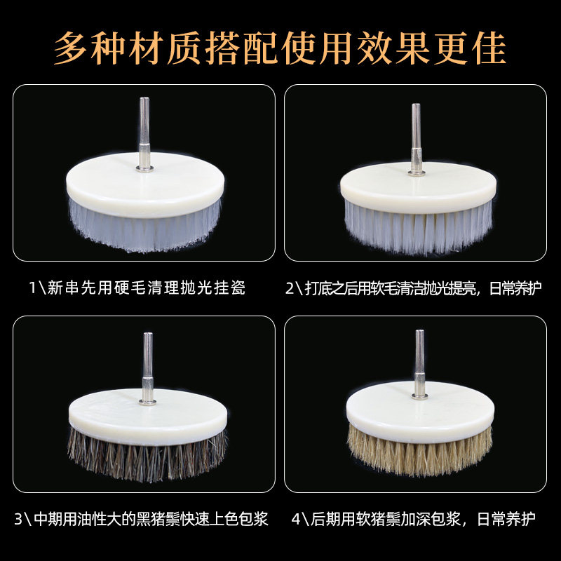 📚 电动文玩刷头6mm杆手电钻台磨机硬猪鬃毛刷轮金刚核桃纳米抛光刷