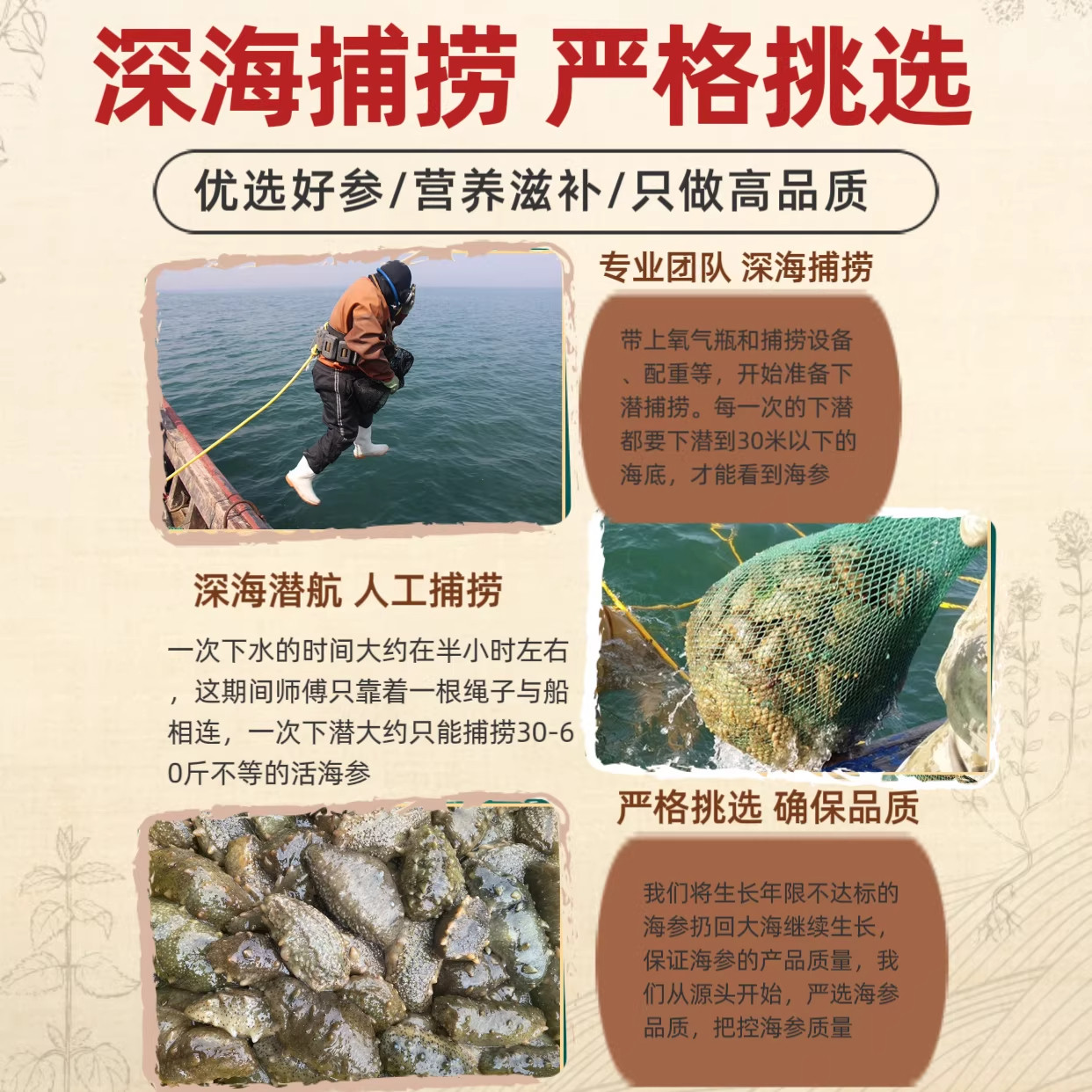 📚 大连淡干海参国标15倍纯野生海鲜9年干货礼盒装深海辽刺参孕妇补