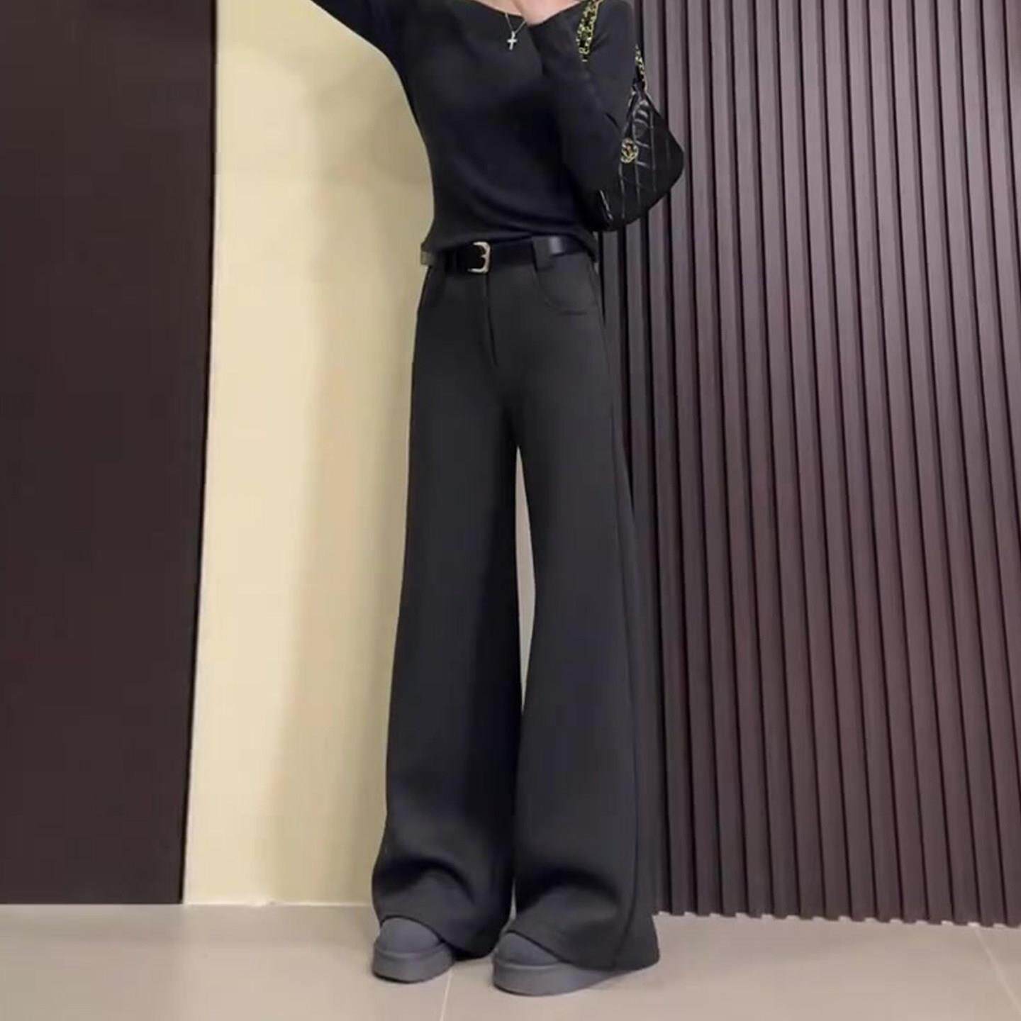 📚 今年流行的爆款裤子女2025新款冬季加绒黑色小个子显瘦修身阔腿裤
