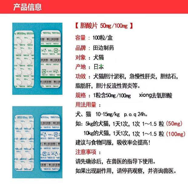 📚 日本田边URSO宠物犬猫急慢性胆汁淤积肝胆酸消化机能改善胆汁酸