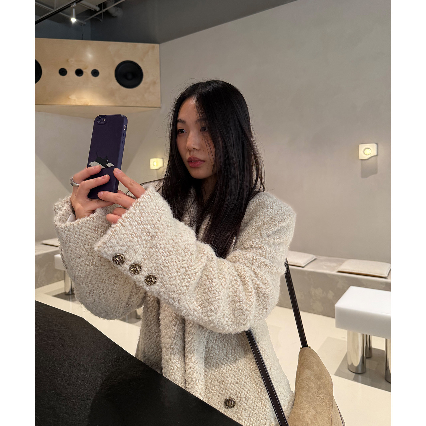 78¥ MF278 OQyZUlVmwGv¥ https://m.tb.cn/h.7EnsIVQ grape wang 富家千金 羊毛混纺小香风收腰外套秋冬宽松毛呢上衣 --------------------- 【原售价】698元 【现售价】698元。