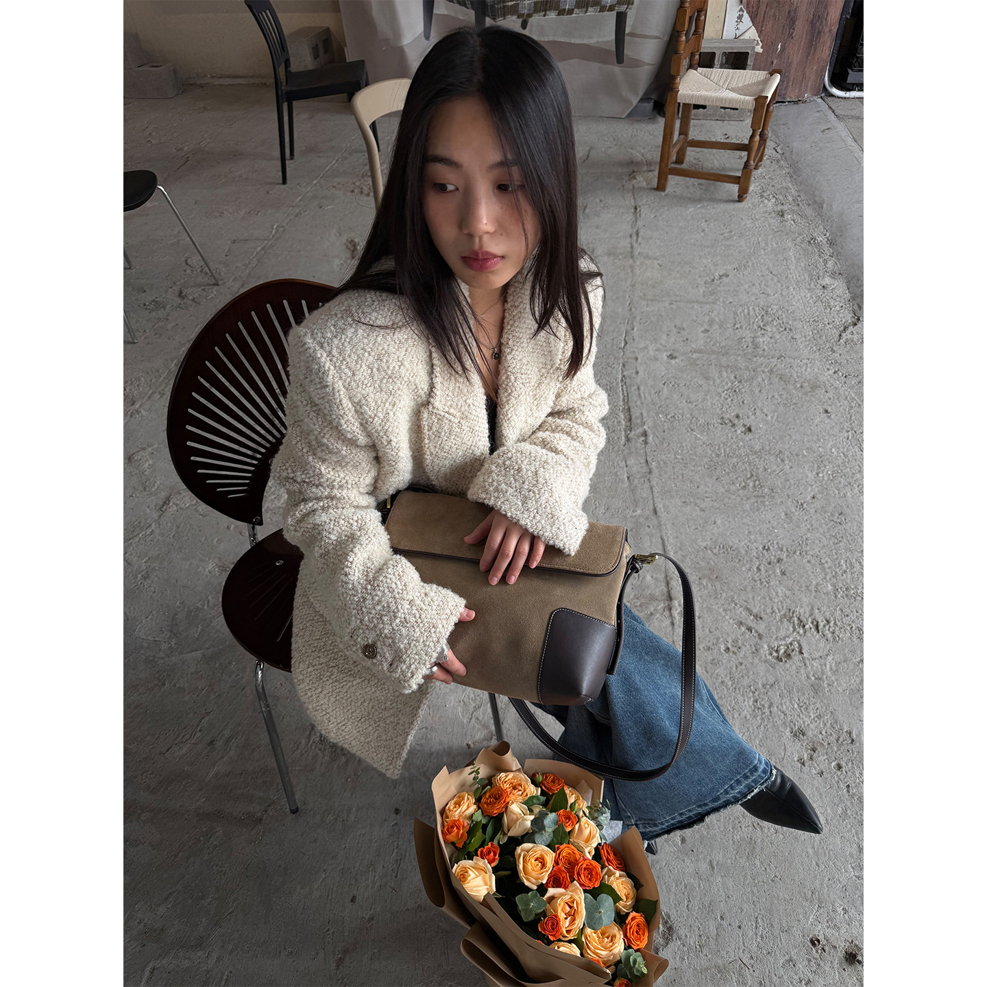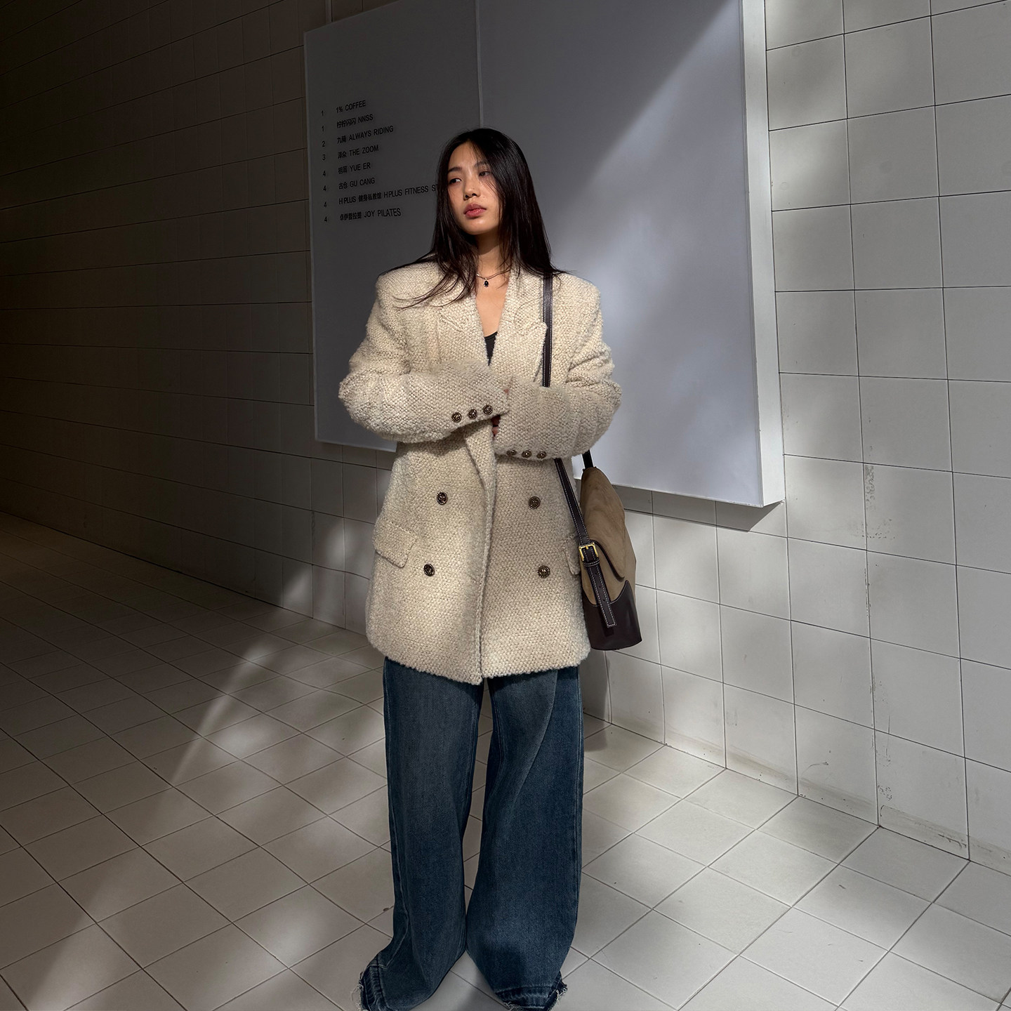 📚 grape wang 富家千金 羊毛混纺小香风收腰外套秋冬宽松毛呢上衣