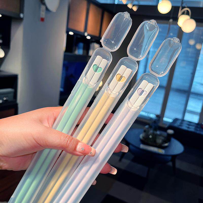 📚 便携式爱心筷子情侣套装家用上班外出随身携带方便一人专用筷子盒