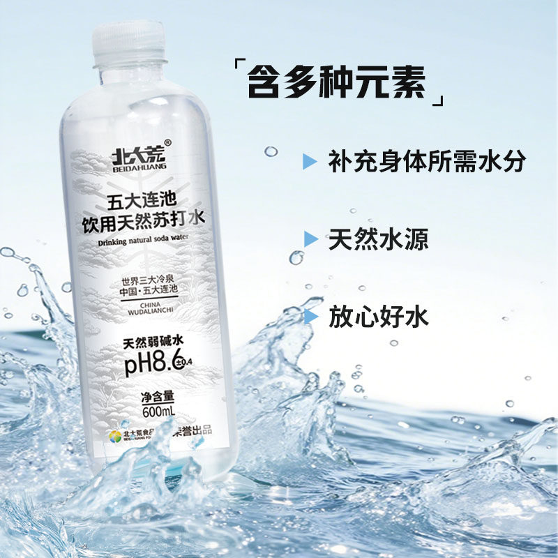 📚 北大荒天然弱碱苏打水600ml*12瓶五大连池天然冷泉苏打水碱性水
