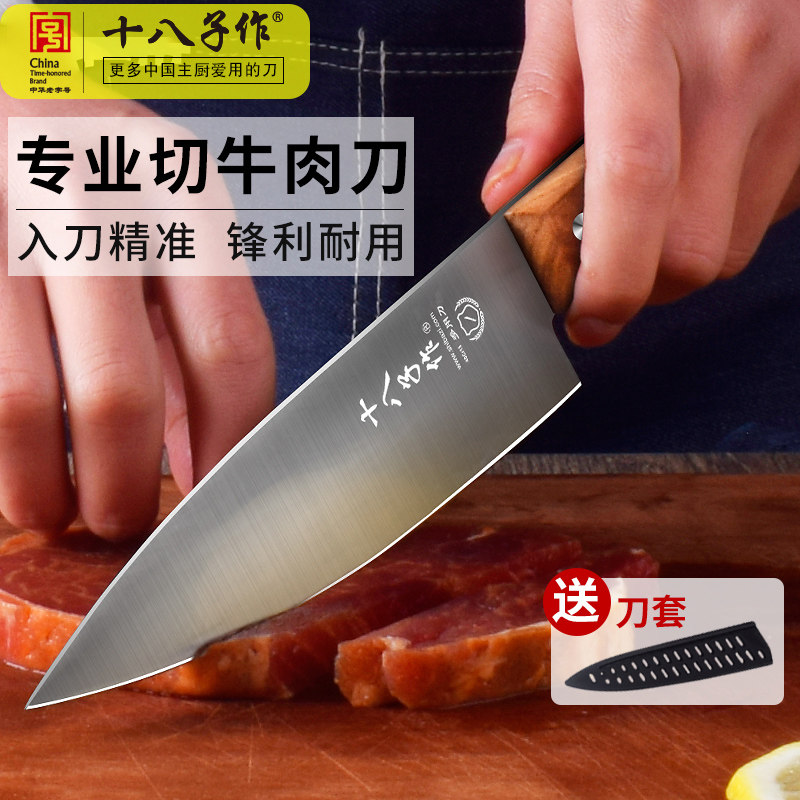 📚 十八子作牛肉刀8寸卖肉专用木柄肉联厂分割猪肉专用刀尖头水果刀