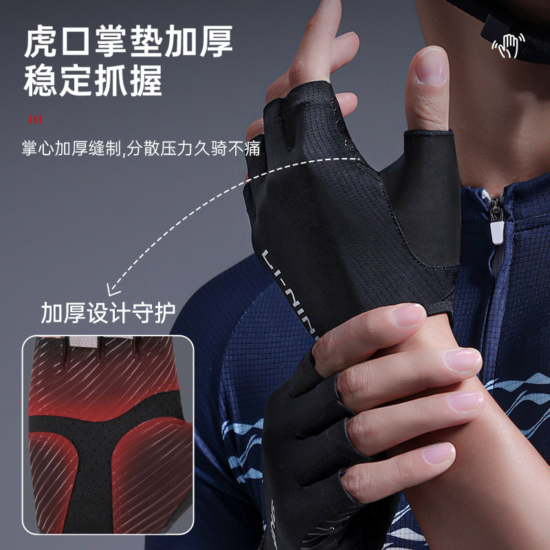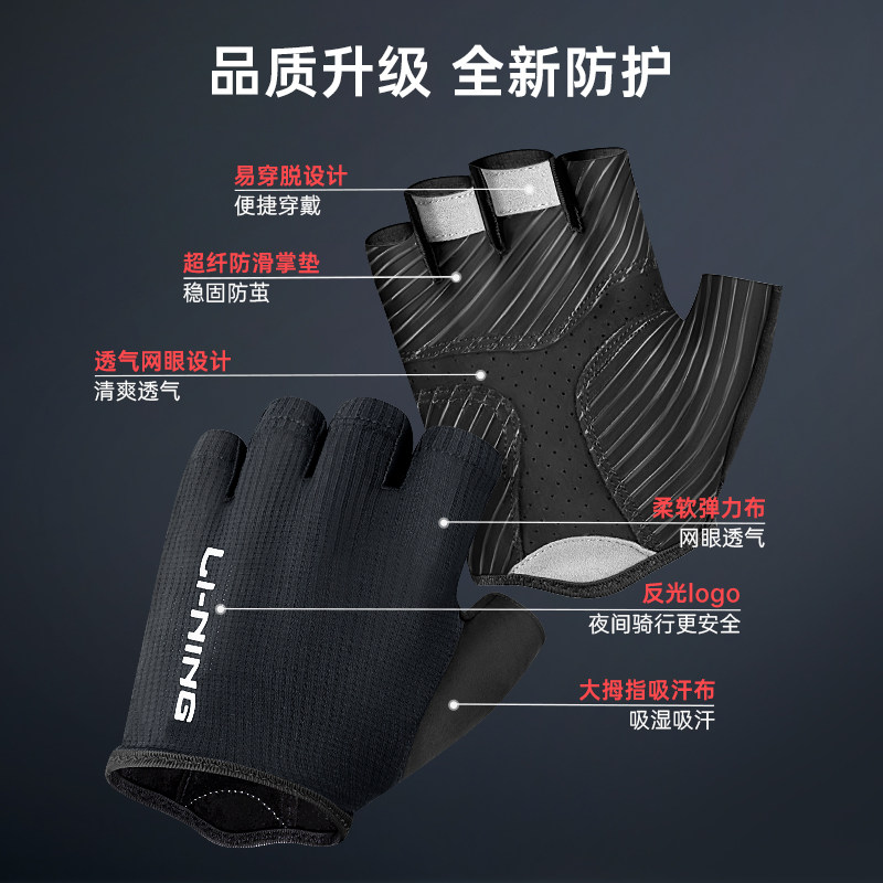 📚 李宁手套半指男短指减震女自行车专业骑行装备透气耐磨骑车公路车