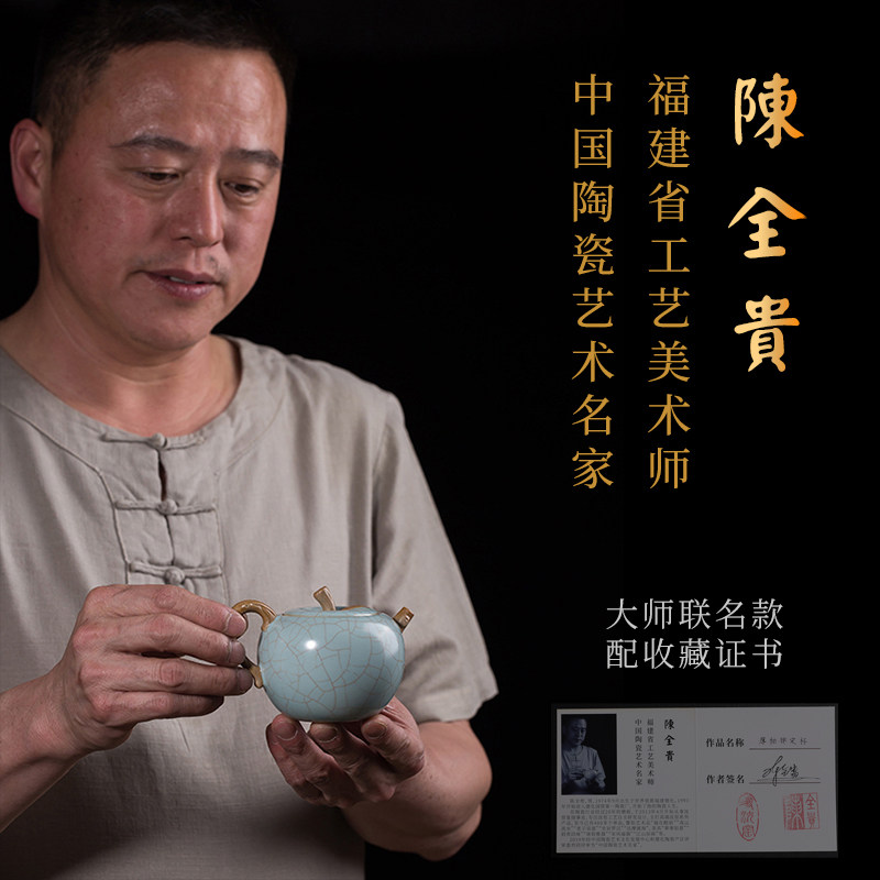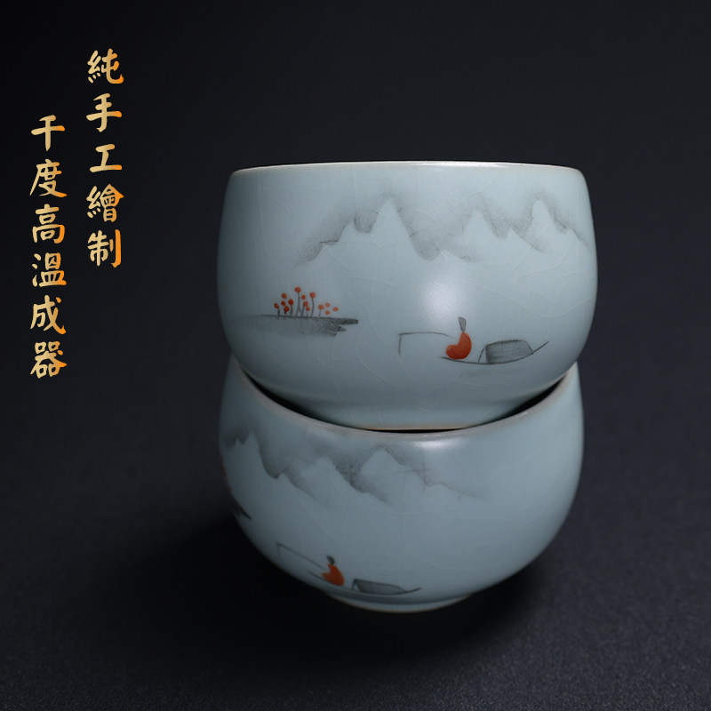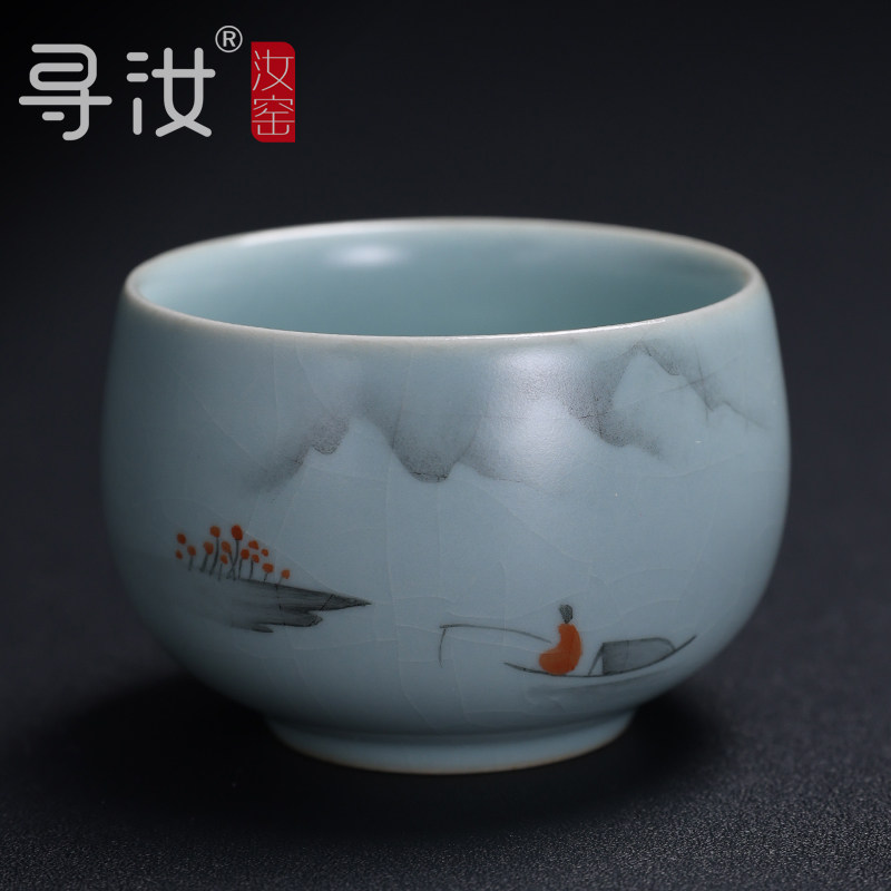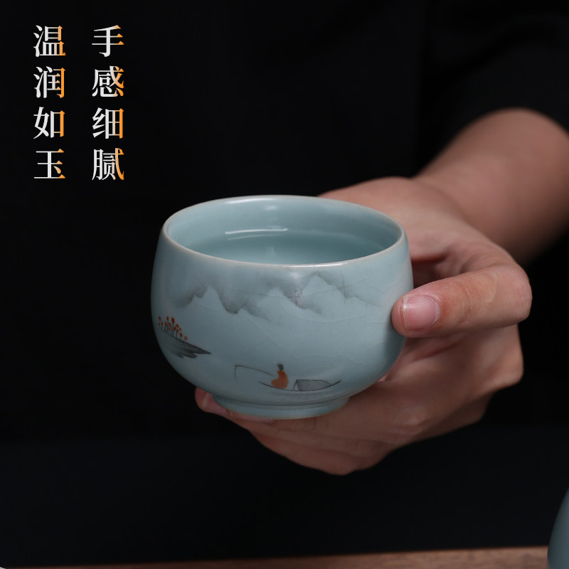 📚 寻汝陈全贵大师汝窑手绘茶杯天青色高档开片陶瓷功夫茶杯茶具单杯