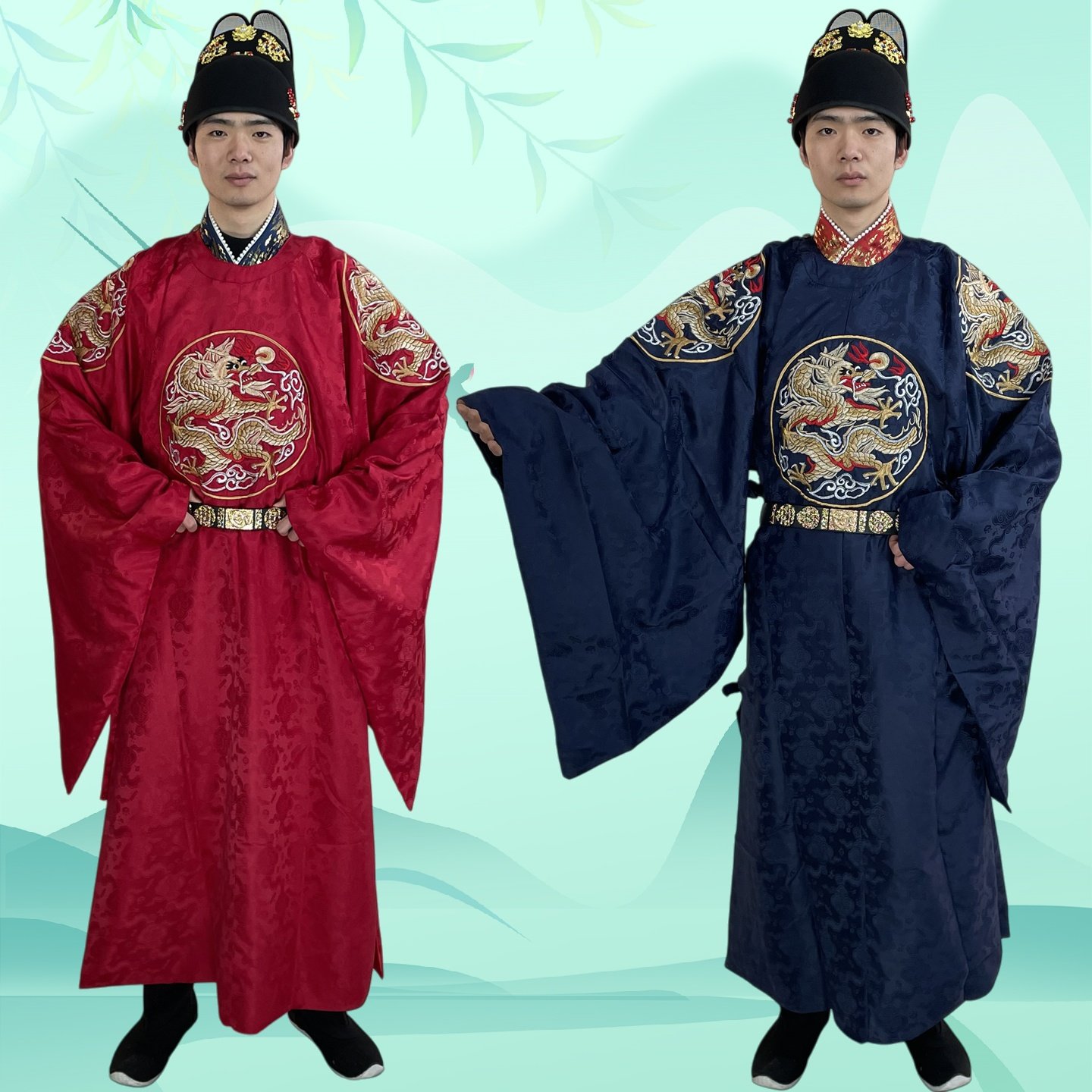 📚 君御明制圆领袍男士汉服红色中式婚服宽松大襟团龙纹补服秋秋冬