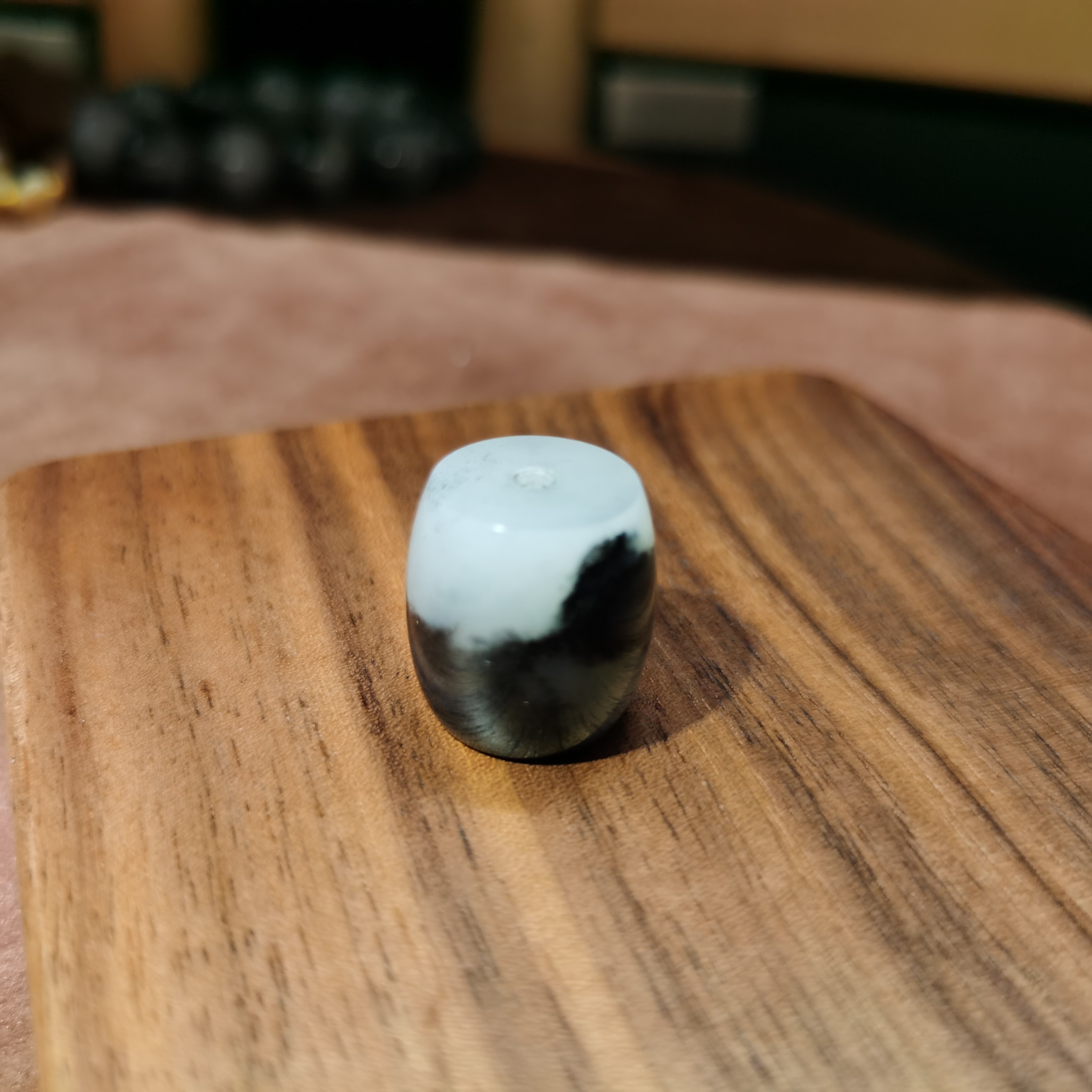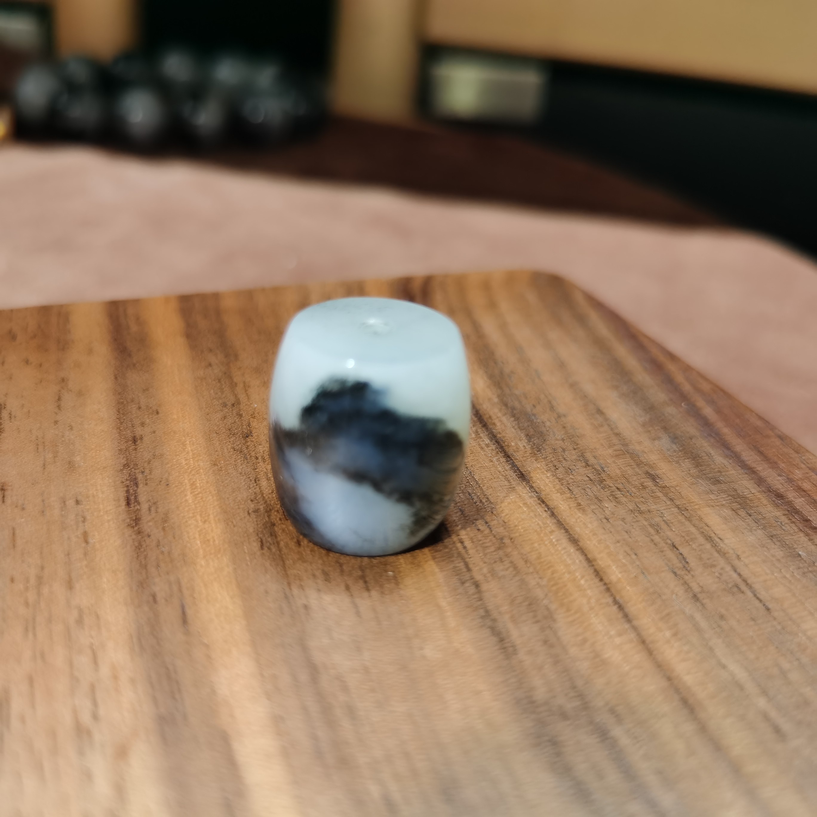 📚 新疆和田玉青花籽料黑白意境桶珠路路通鼓珠锁骨珠配珠男女款礼品