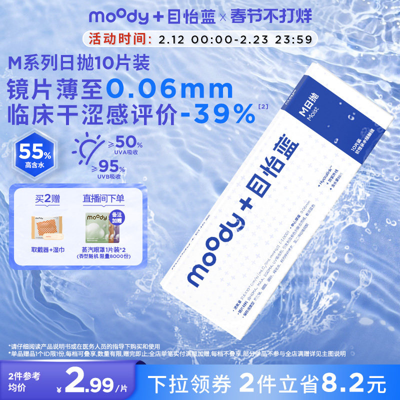 📚 MOODYBLUE日抛小蓝片隐形近视眼镜透明高透氧舒适水凝胶10片