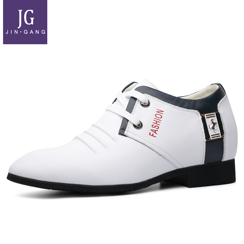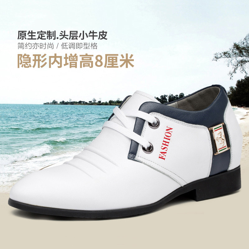 📚 隐形内增高鞋男10cm8商务休闲皮鞋白色男鞋英伦潮时尚尖头小白鞋