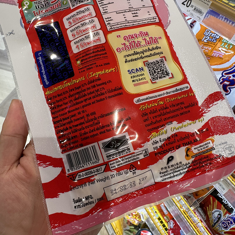 📚 泰国711原装进口直邮TARO新鳕鱼丝鱿鱼干零食麻辣味20g满128包邮