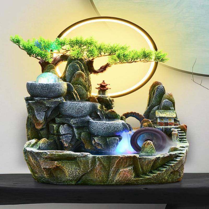 📚 件高循环流水摆客厅造鱼缸假山车喷泉水盆UWO景山装饰生财风水轮