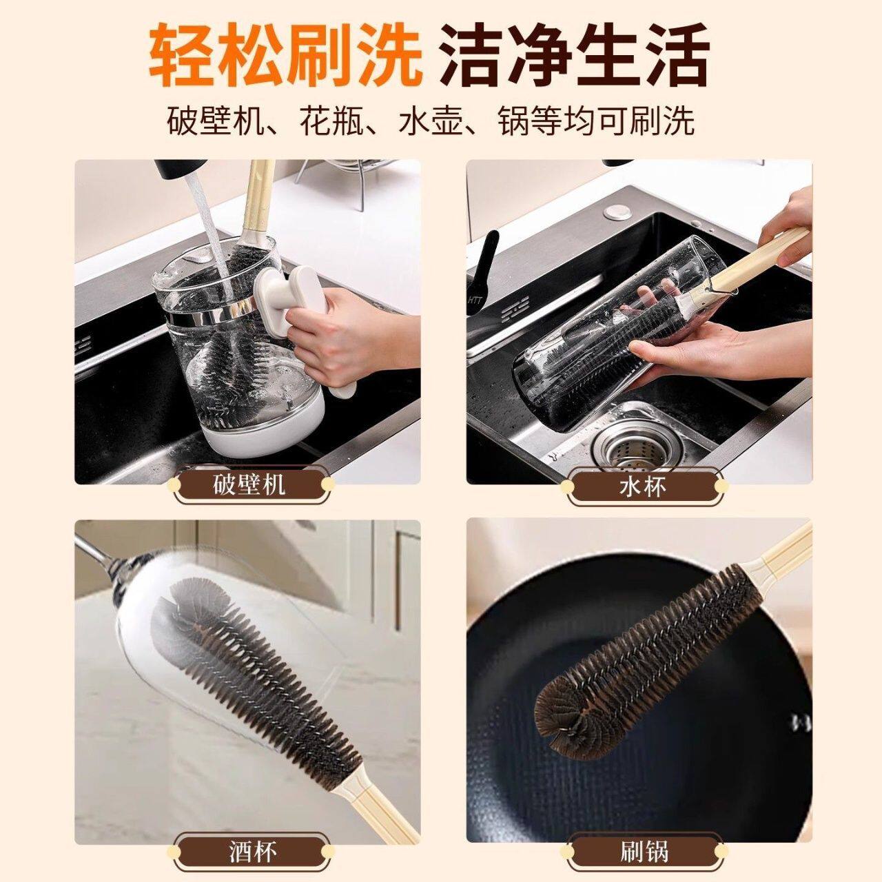 📚 破壁机刷子长柄清洁刷杯刷硬毛刷厨房专用豆浆机清洗杯子神器家用