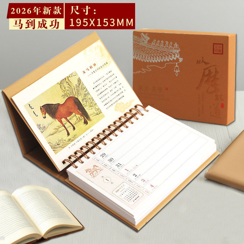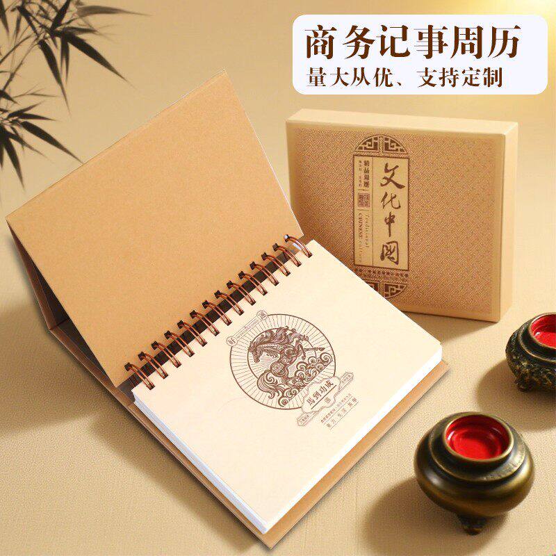📚 上新2026马年牛皮纸周历记事本台历创意办公商务桌面摆件时尚生活日历月计划国学智慧日程本企业LOGO广告定制