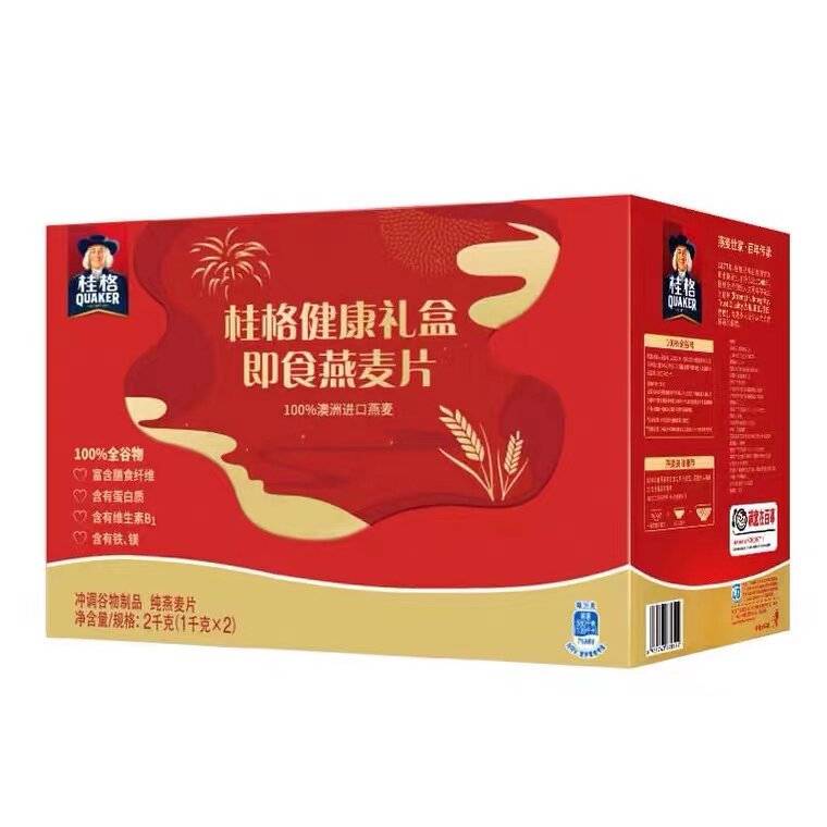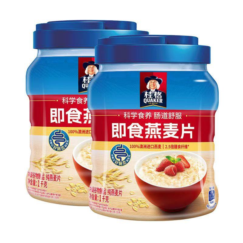 📚 桂格即食纯燕麦片1000g*2罐原味0蔗糖营养早餐速溶过年送礼礼盒