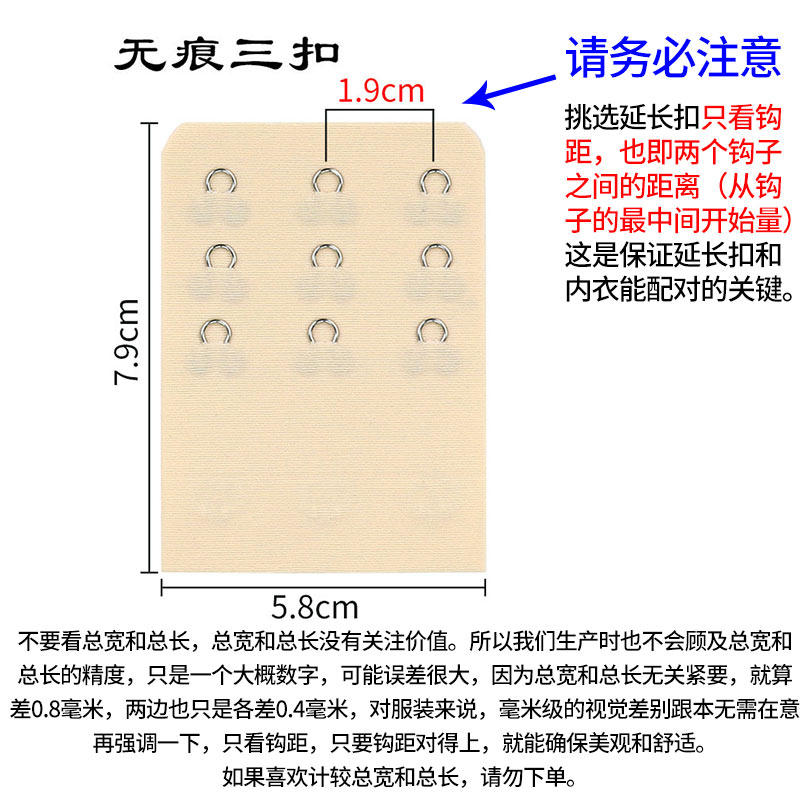 📚 大三排扣无痕1.9cm宽间距加长文胸扣接头配件3排延长内衣挂钩结带