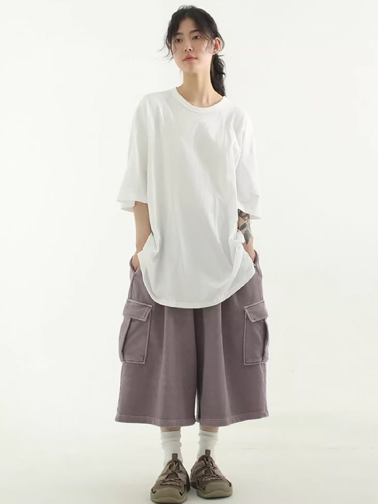 📚 韩代 pigmented cotton cargo half banding pants(unisex)半腿裤