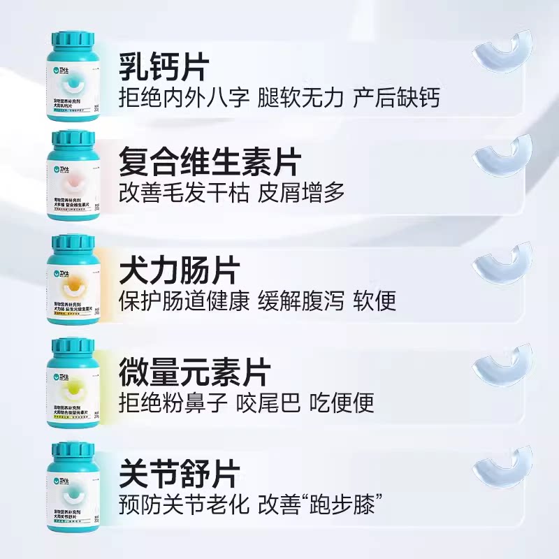 📚 卫仕狗营养品1+1鲨鱼软骨素关节舒乳钙片维生素微量元素力肠2瓶装
