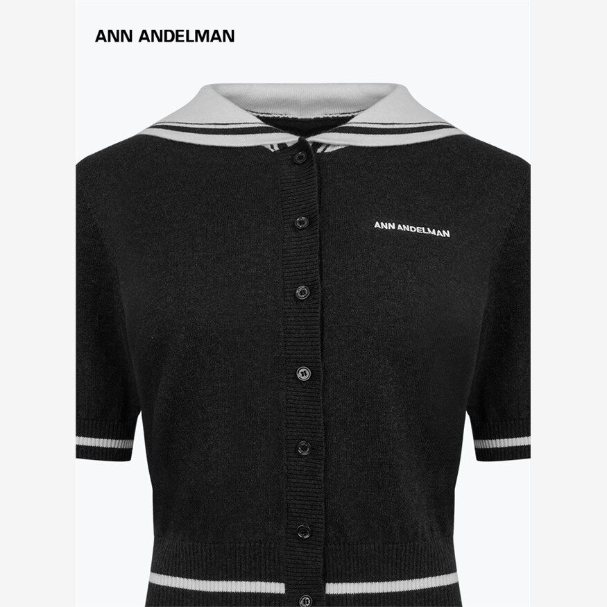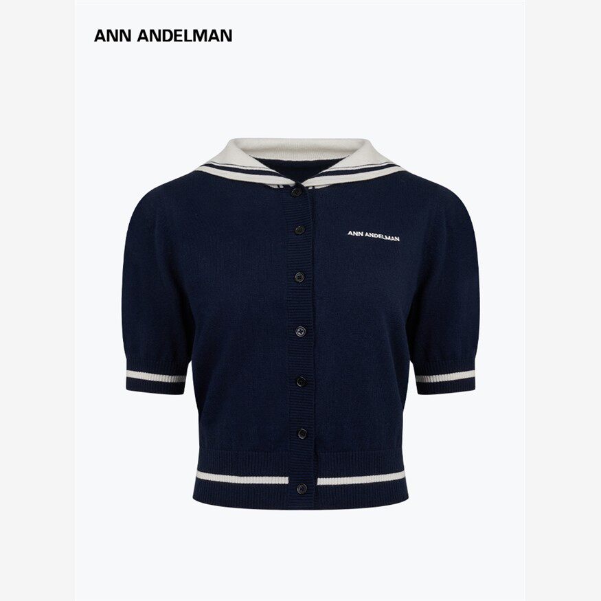 📚 ANN ANDELMAN早秋新款女装条纹间色毛织开衫针织短袖水手服上衣